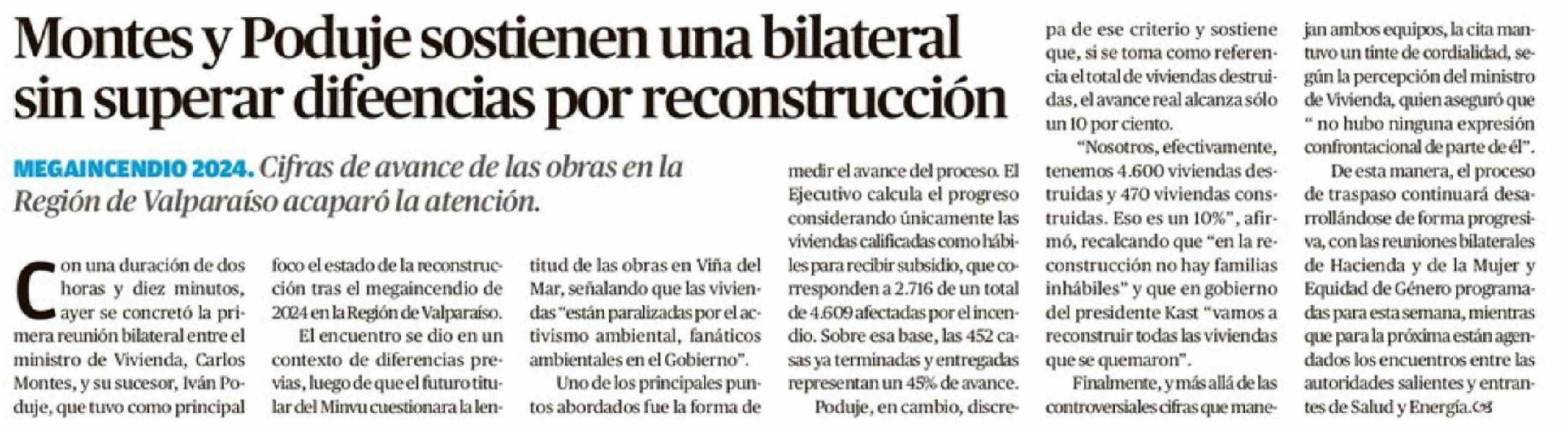 Montes y Poduje sostienen una bilateral sin superar difeencias por reconstrucción 04-02-2026 Crónica de Chillán |