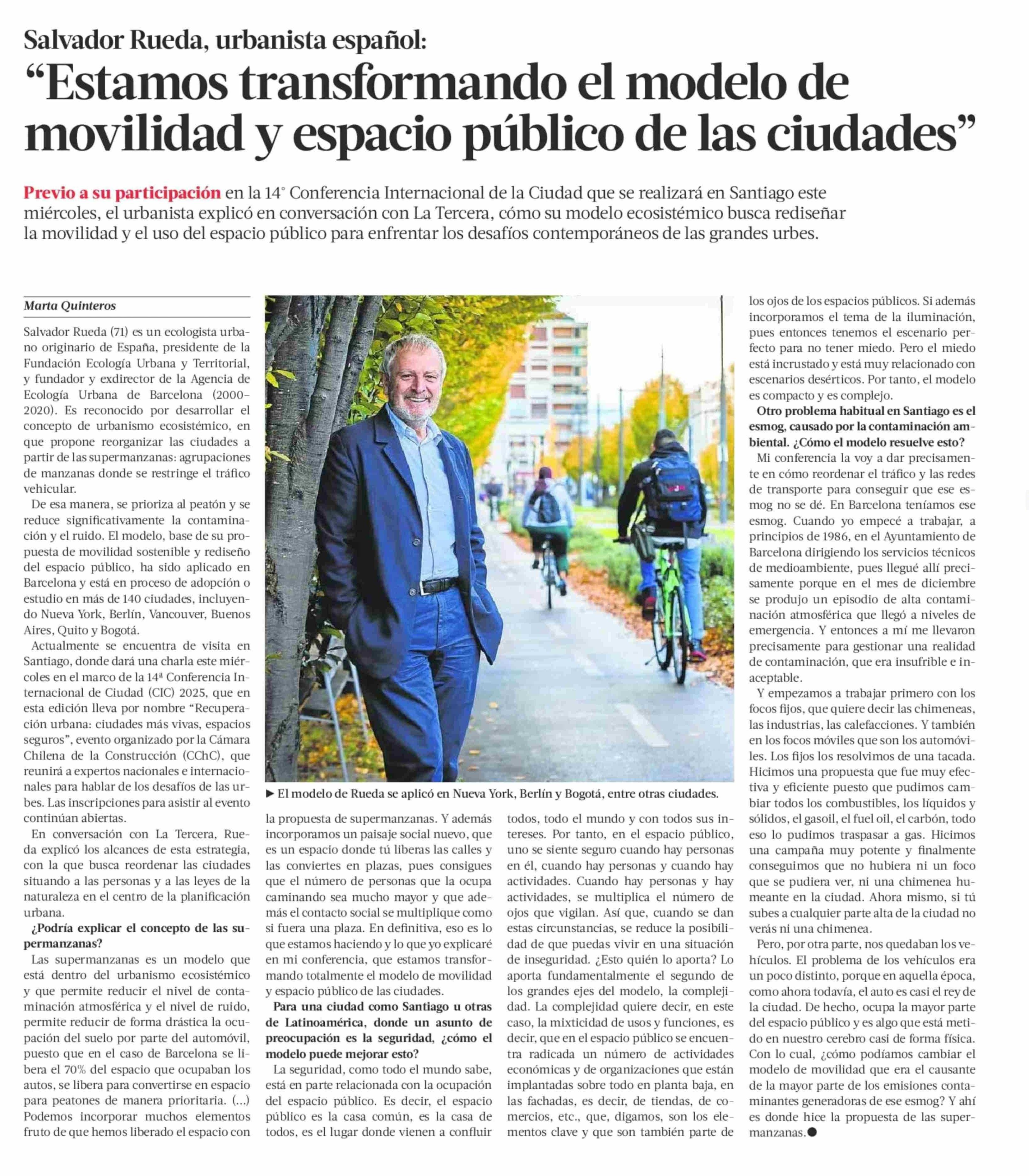 “Estamos transformando el modelo de movilidad y espacio público de las ciudades” 17-06-2025 La Tercera |