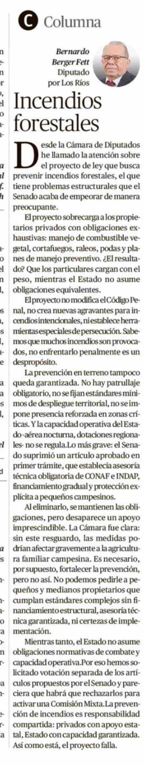 Columnas de Opinión: Incendios forestales 02-03-2026 Diario Austral Región de Los Ríos |