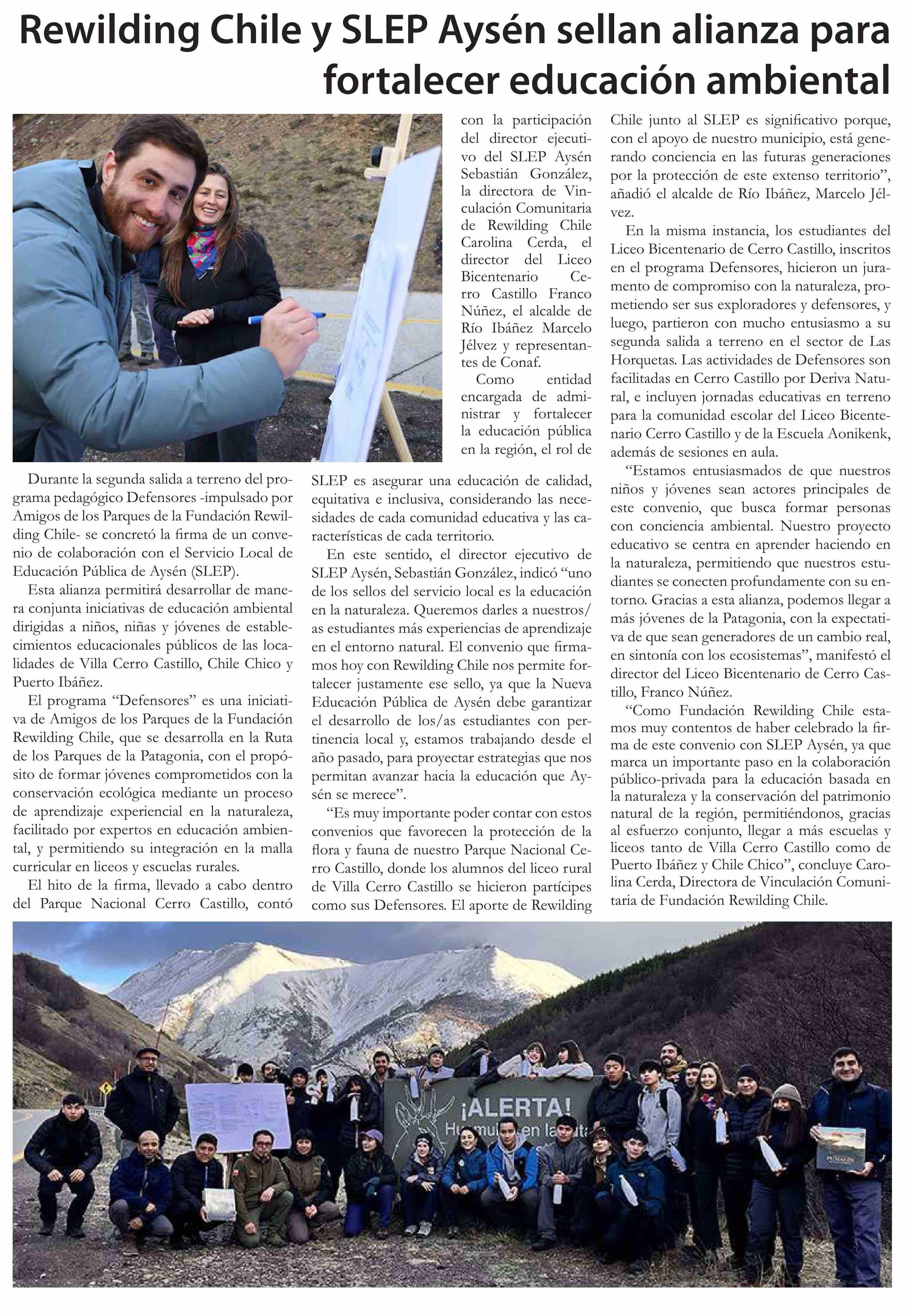 | Título: | Rewilding Chile y SLEP Aysén sellan alianza para fortalecer educación ambiental |