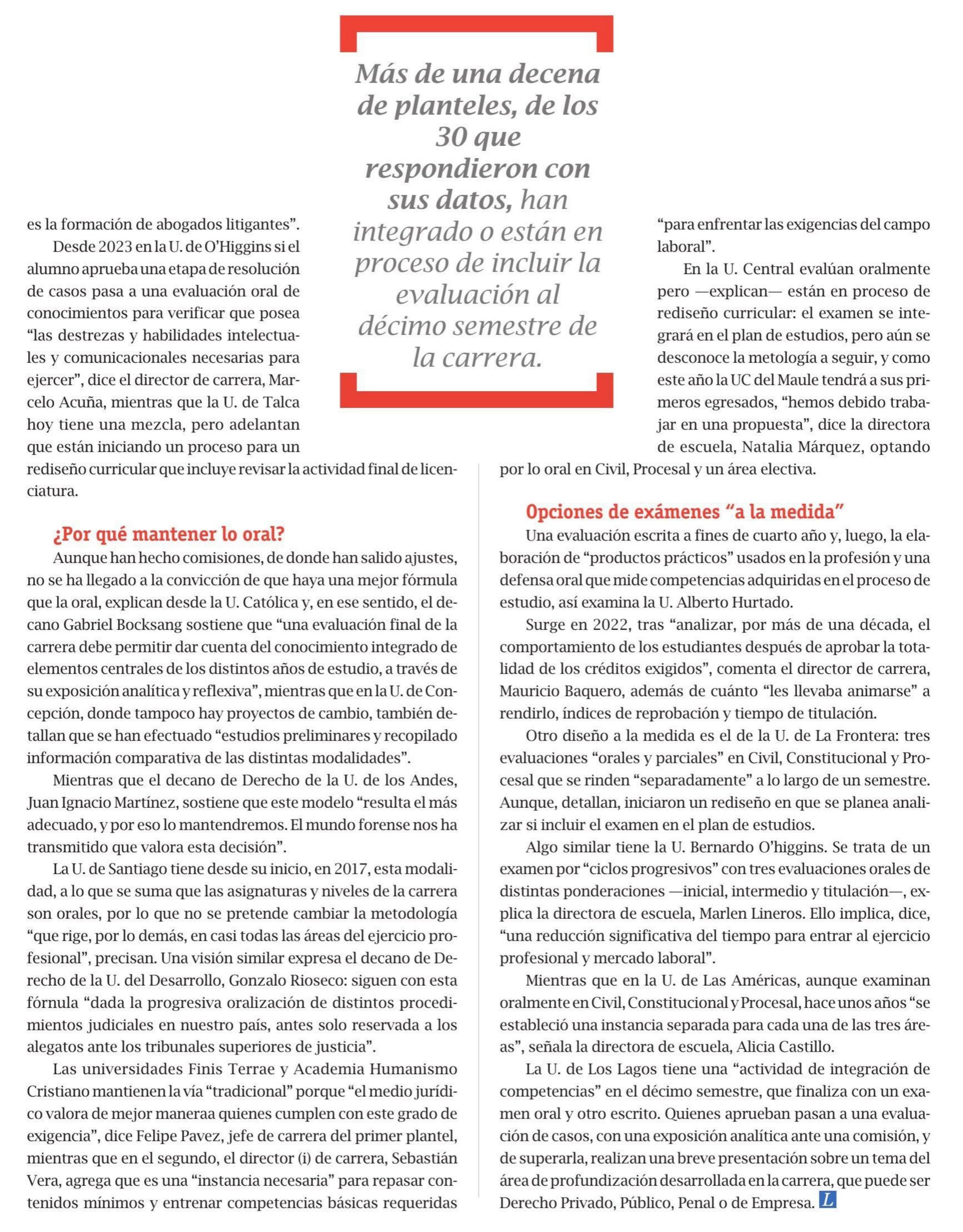Ni solo oral ni solo escrito: La nueva tendencia del examen de grado en Derecho 31-12-2024 El Mercurio Legal |
