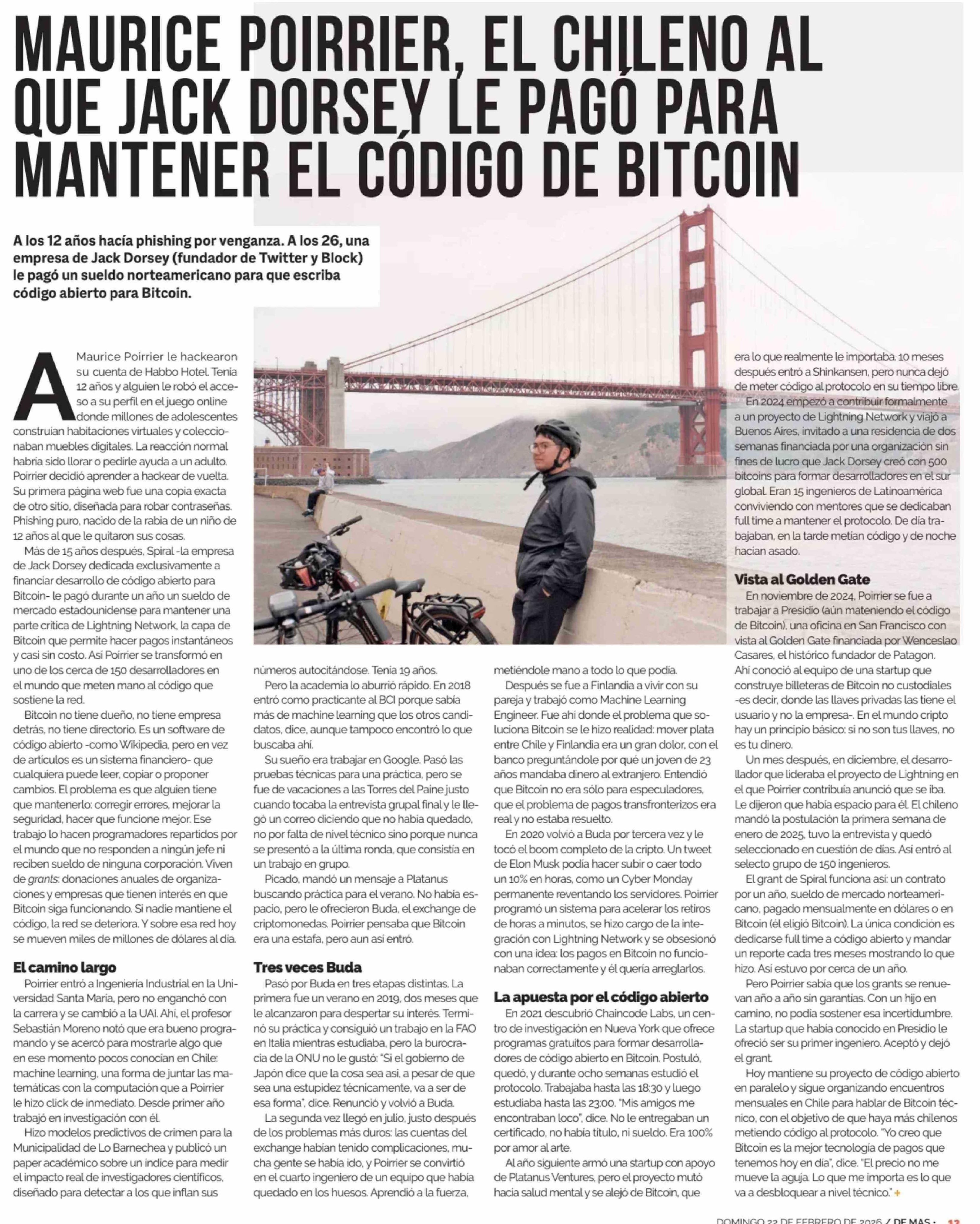 MAURICE POIRRIER, EL CHILENO AL QUE JACK DORSEY LE PAGO PARA MANTENER EL CODIGO DE BITCOIN 22-02-2026 Diario Financiero |