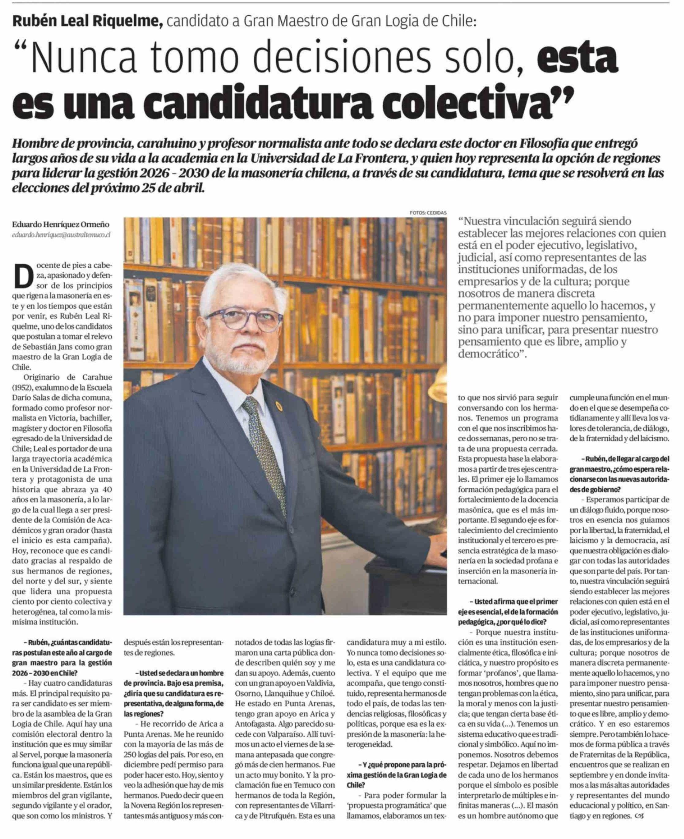 "Nunca tomo decisiones solo, esta es una candidatura colectiva" 29-03-2026 El Austral de la Araucanía |