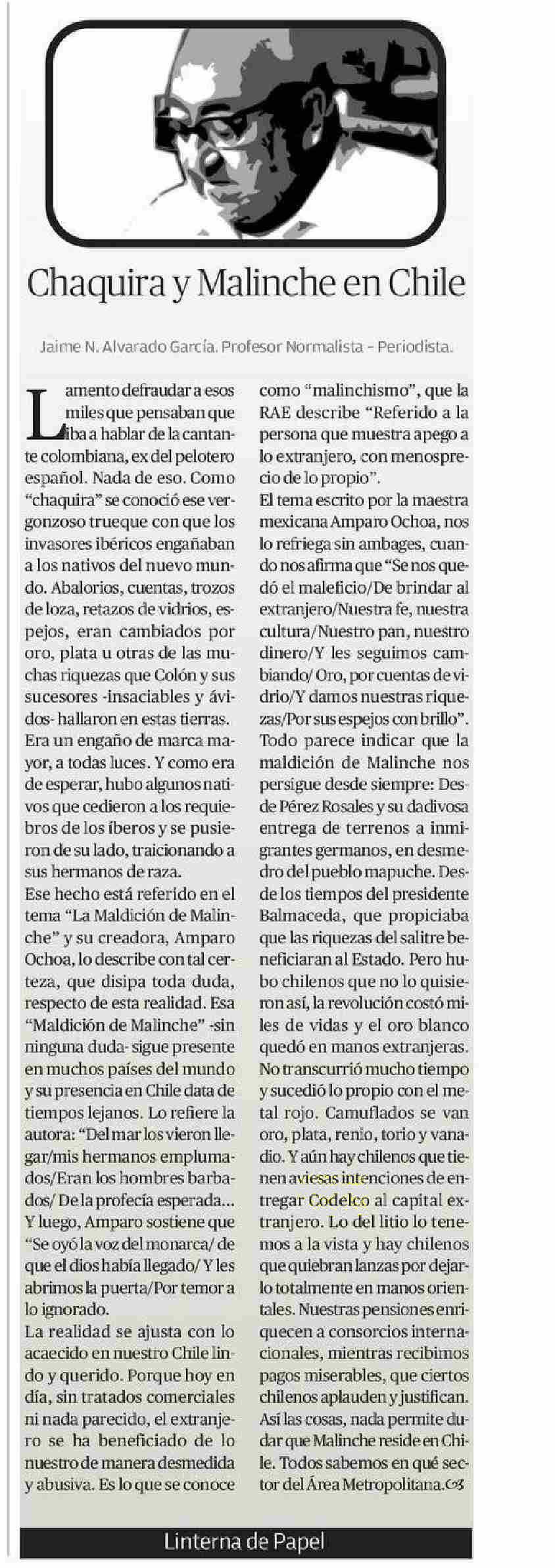 Chaquira y Malinche en Chile 02-06-2025 El Mercurio de Antofagasta |