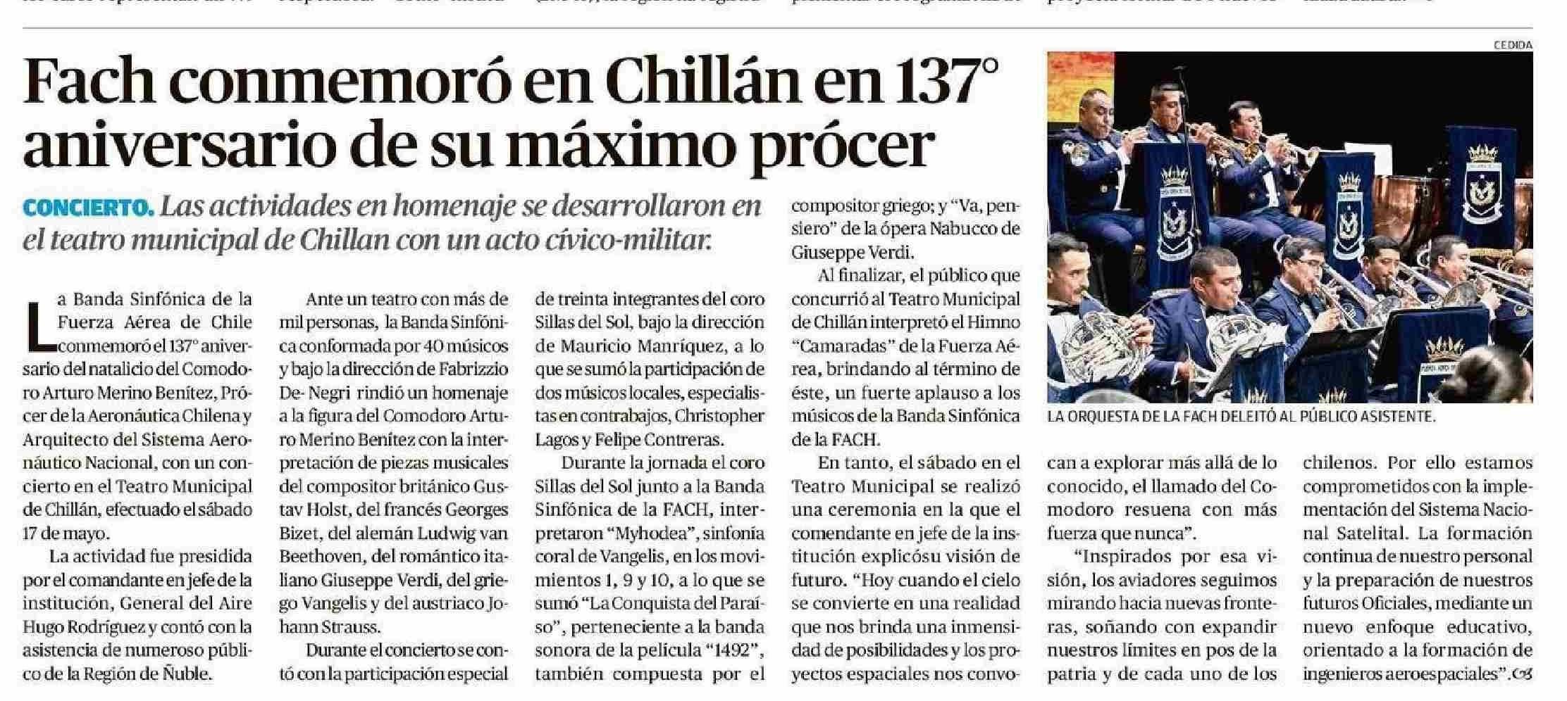 Fach conmemoró en Chillán en 137” aniversario de su máximo prócer 19-05-2025 Crónica de Chillán |