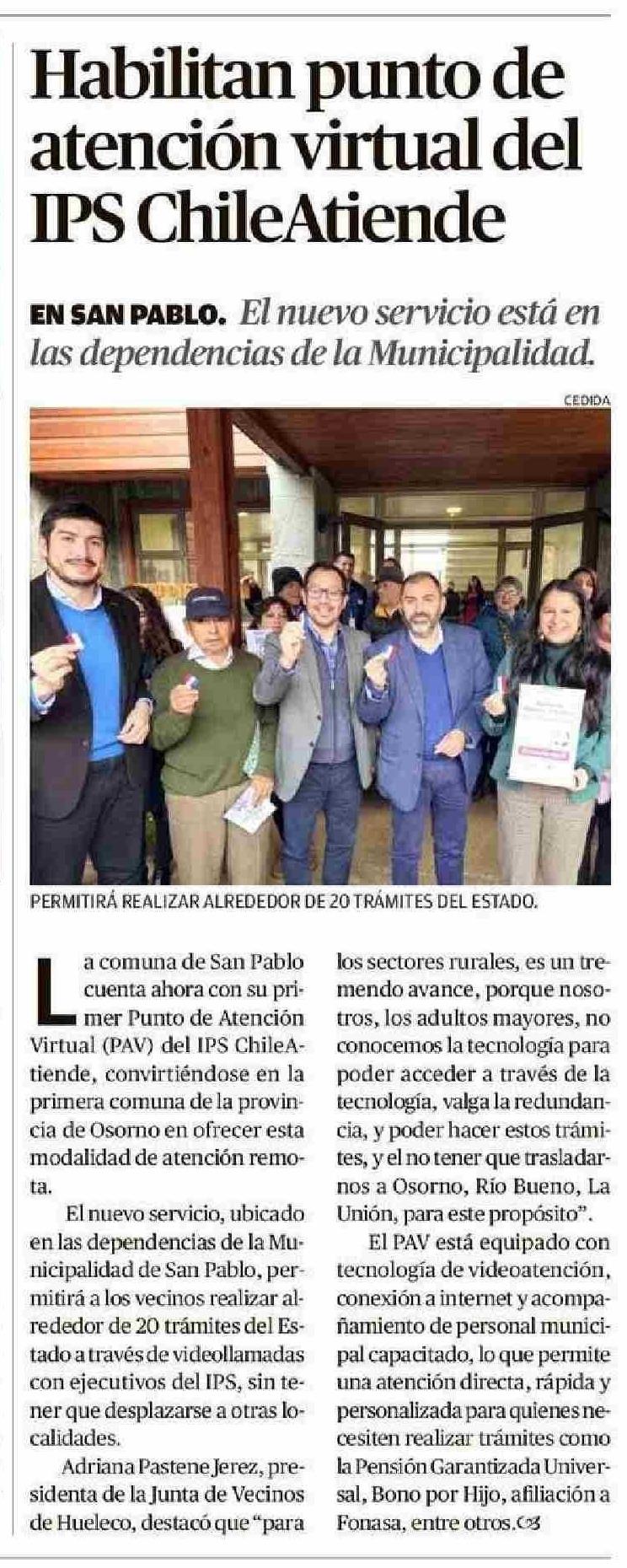 Habilitan punto de IPS ChileAtiende atención virtual del 20-05-2025 El Austral de Osorno |