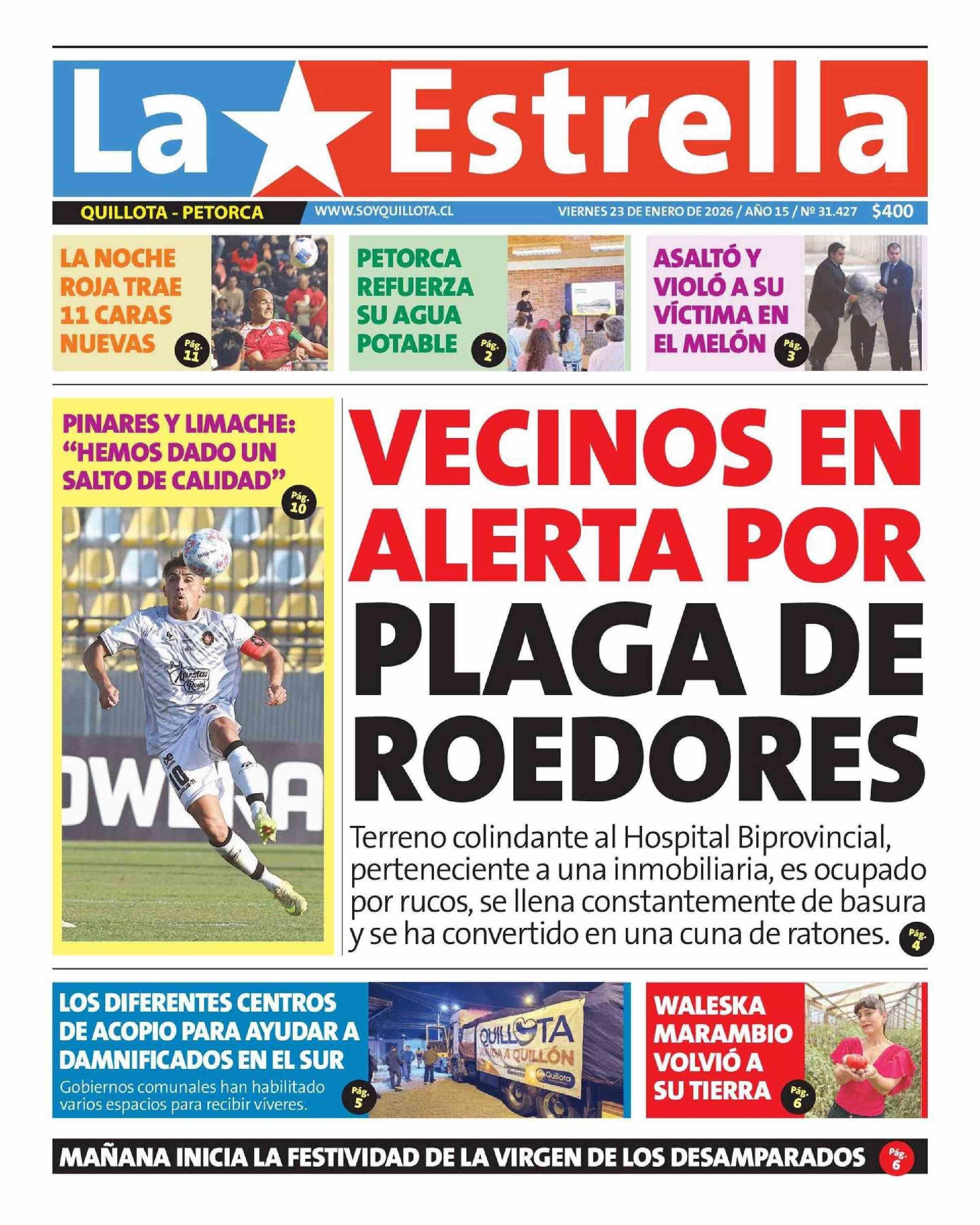 PORTADA LA ESTRELLA DE QUILLOTA CHILE 23-01-2026 La Estrella de Quillota |