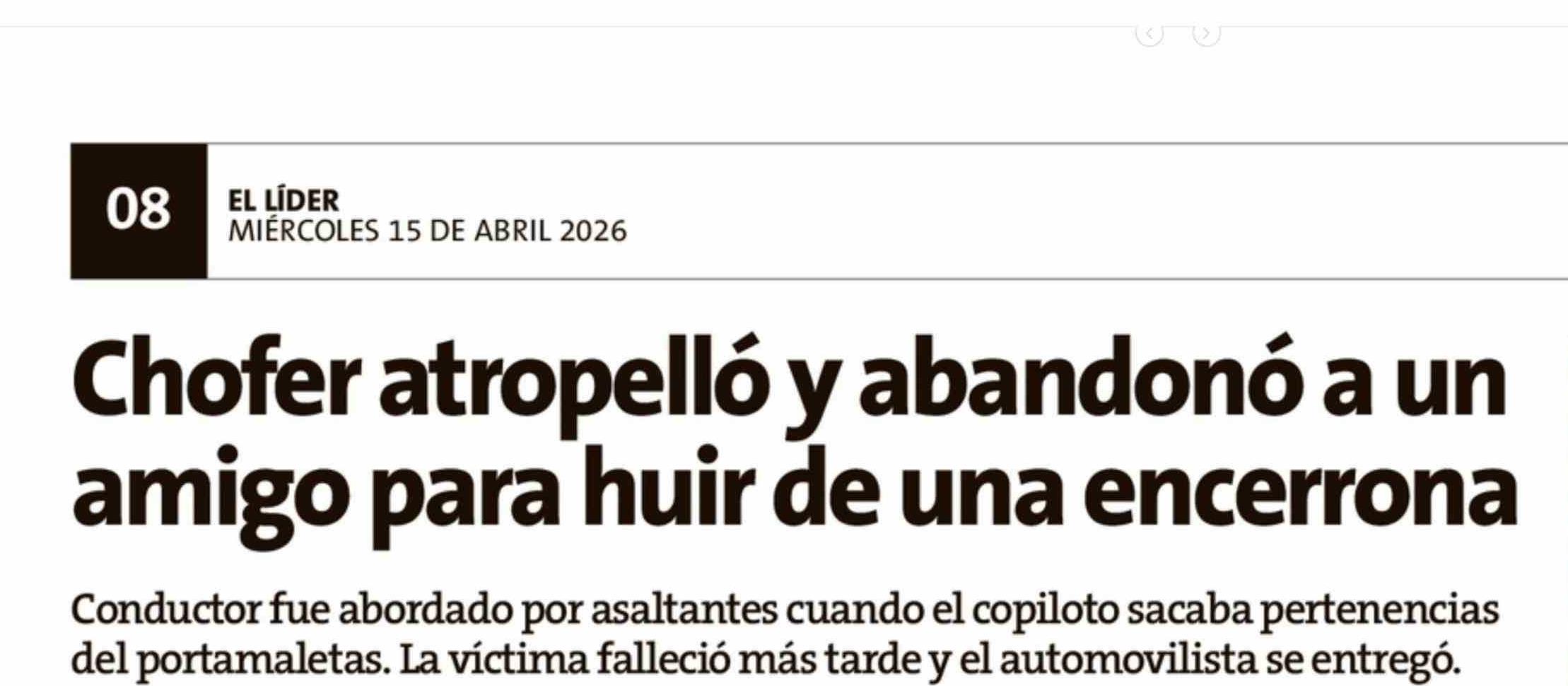 Chofer atropelló y abandonó a un amigo para huir de una encerrona 15-04-2026 El Líder |