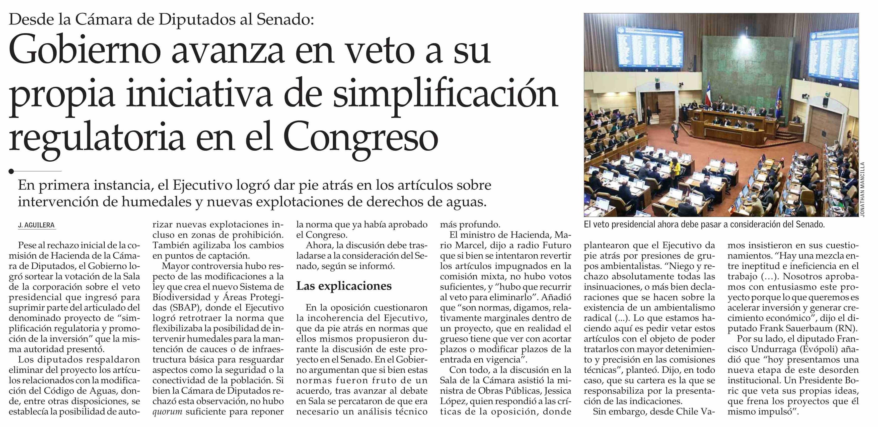 Gobierno avanza en veto a su propia iniciativa de simplificación regulatoria en el Congreso 12-06-2025 El Mercurio |