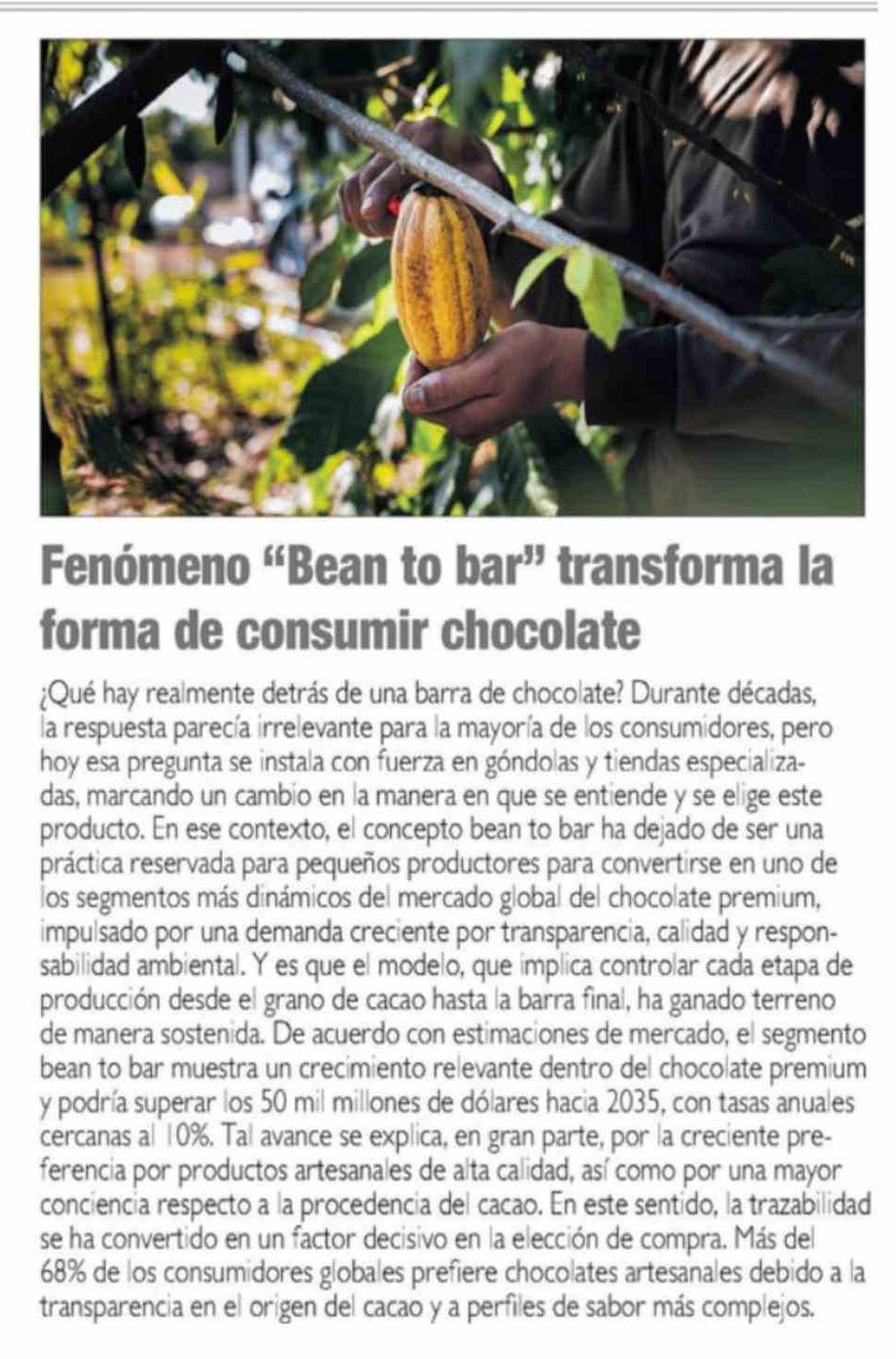 Título: Fenómeno "Bean to bar" transforma la forma de consumir chocolate