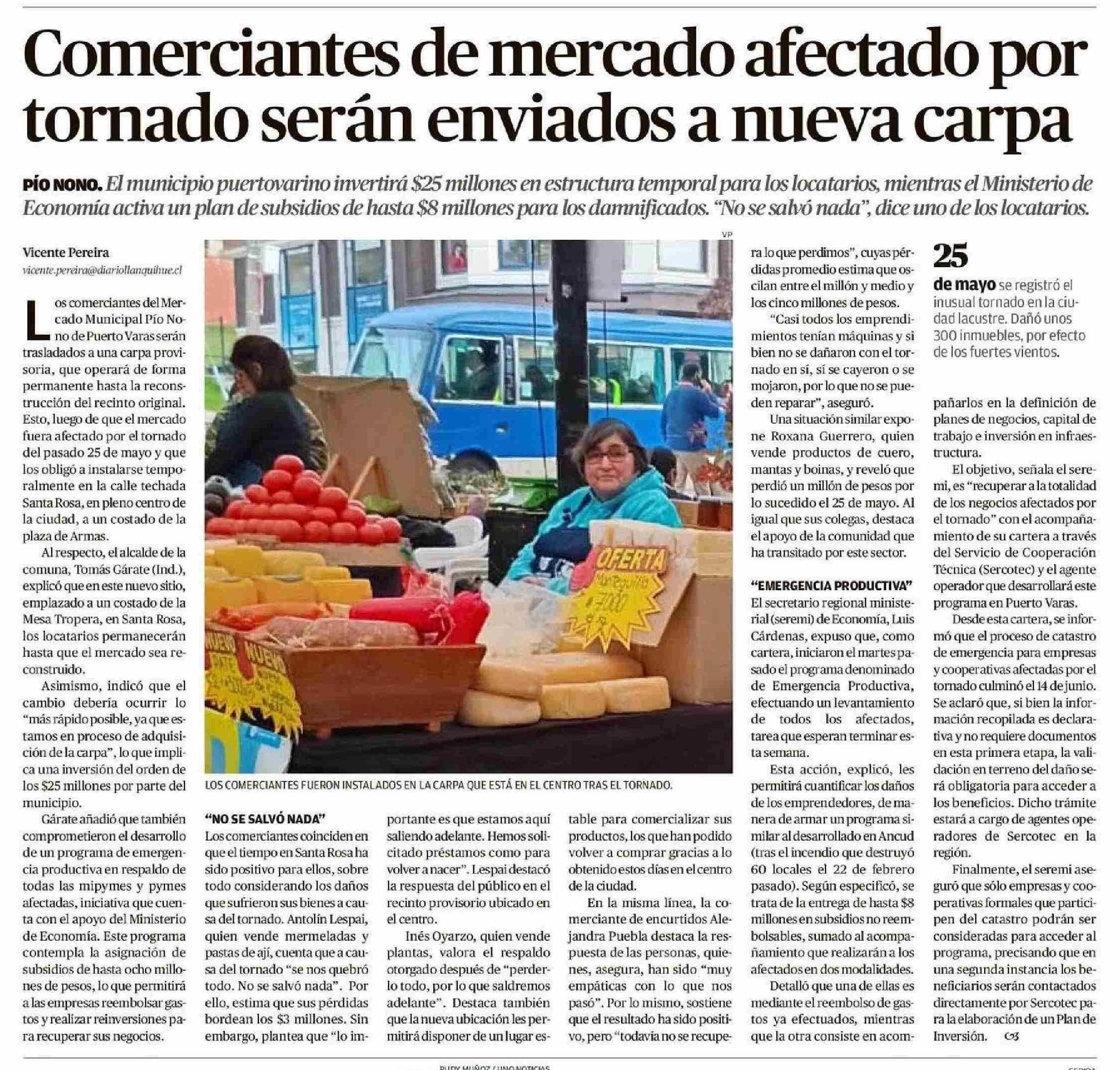 Comerciantes de mercado afectado por tornado serán enviados a nueva carpa 16-06-2025 El Llanquihue |
