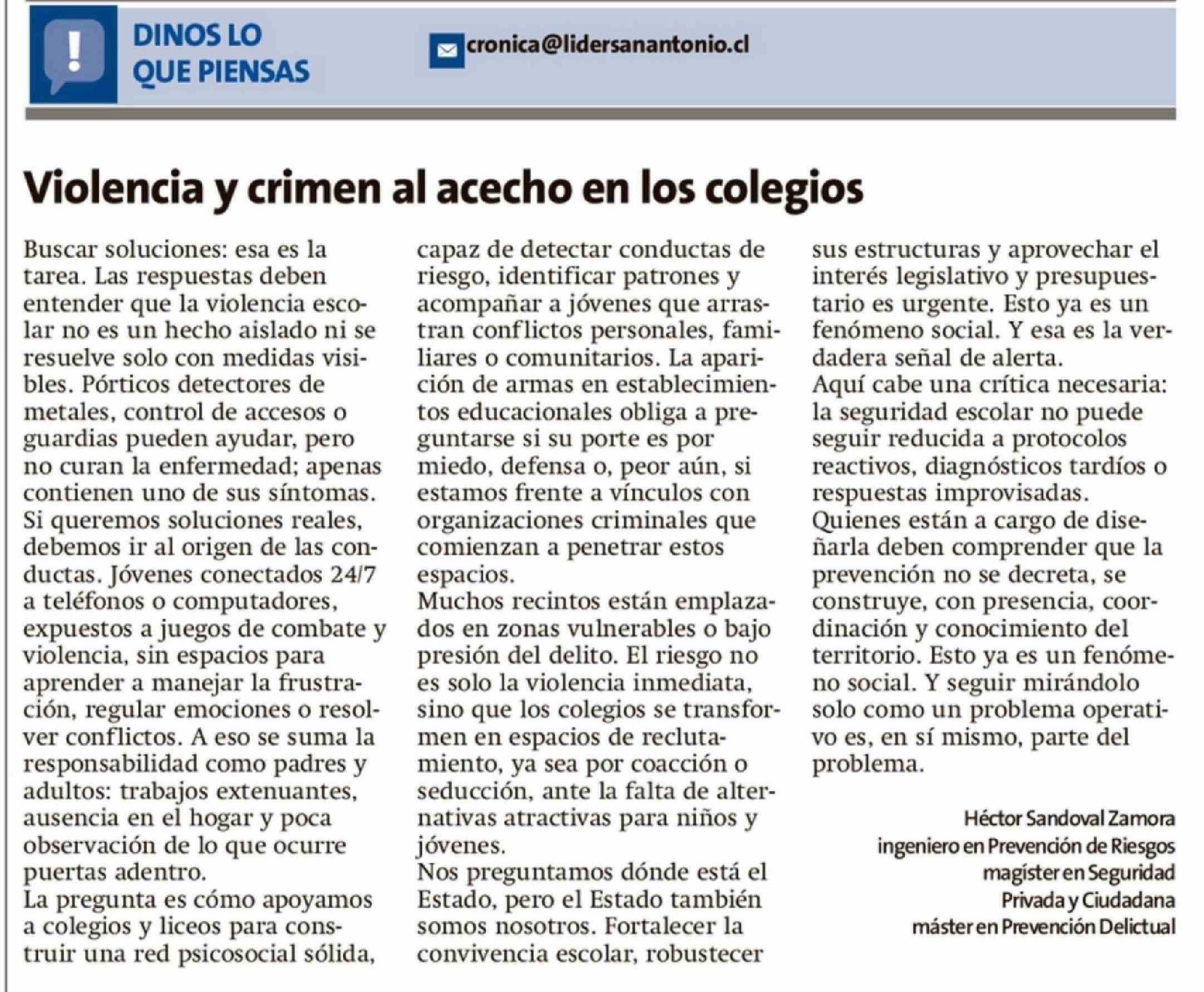 Cartas: Violencia y crimen al acecho en los colegios