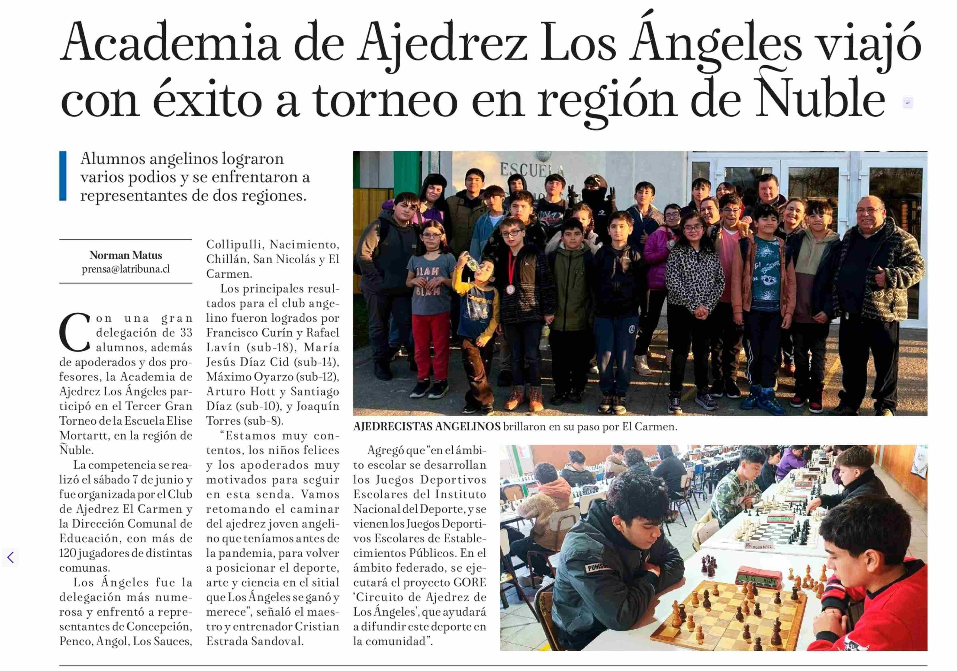 Academia de Ajedrez Los Ángeles viajó con éxito a torneo en región de Ñuble 11-06-2025 La Tribuna |