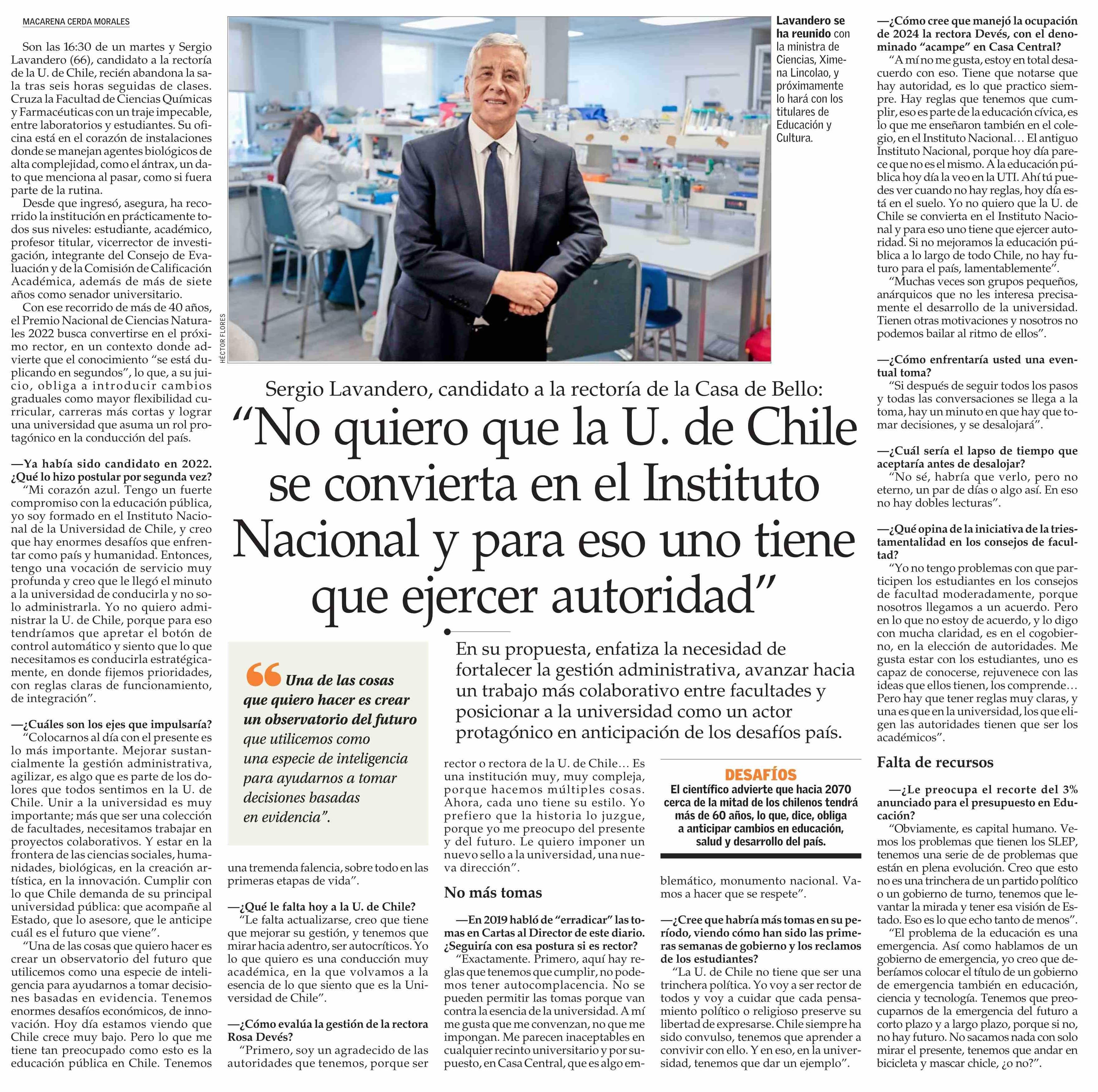 Título: “No quiero que la U. de Chile se convierta en el Instituto Nacional y para eso uno tiene que ejercer autoridad”