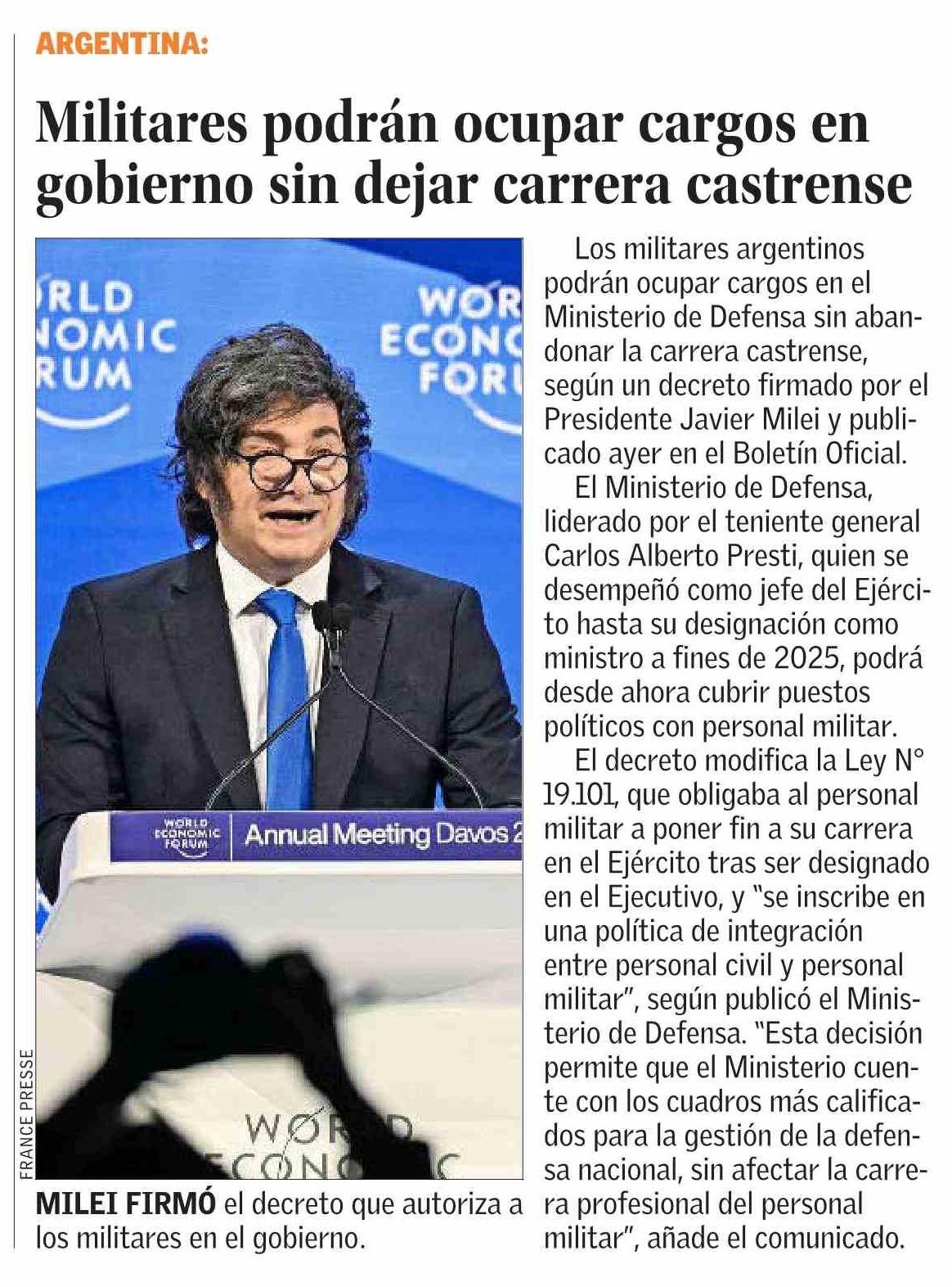 Título: Militares podrán ocupar cargos en gobierno sin dejar carrera castrense