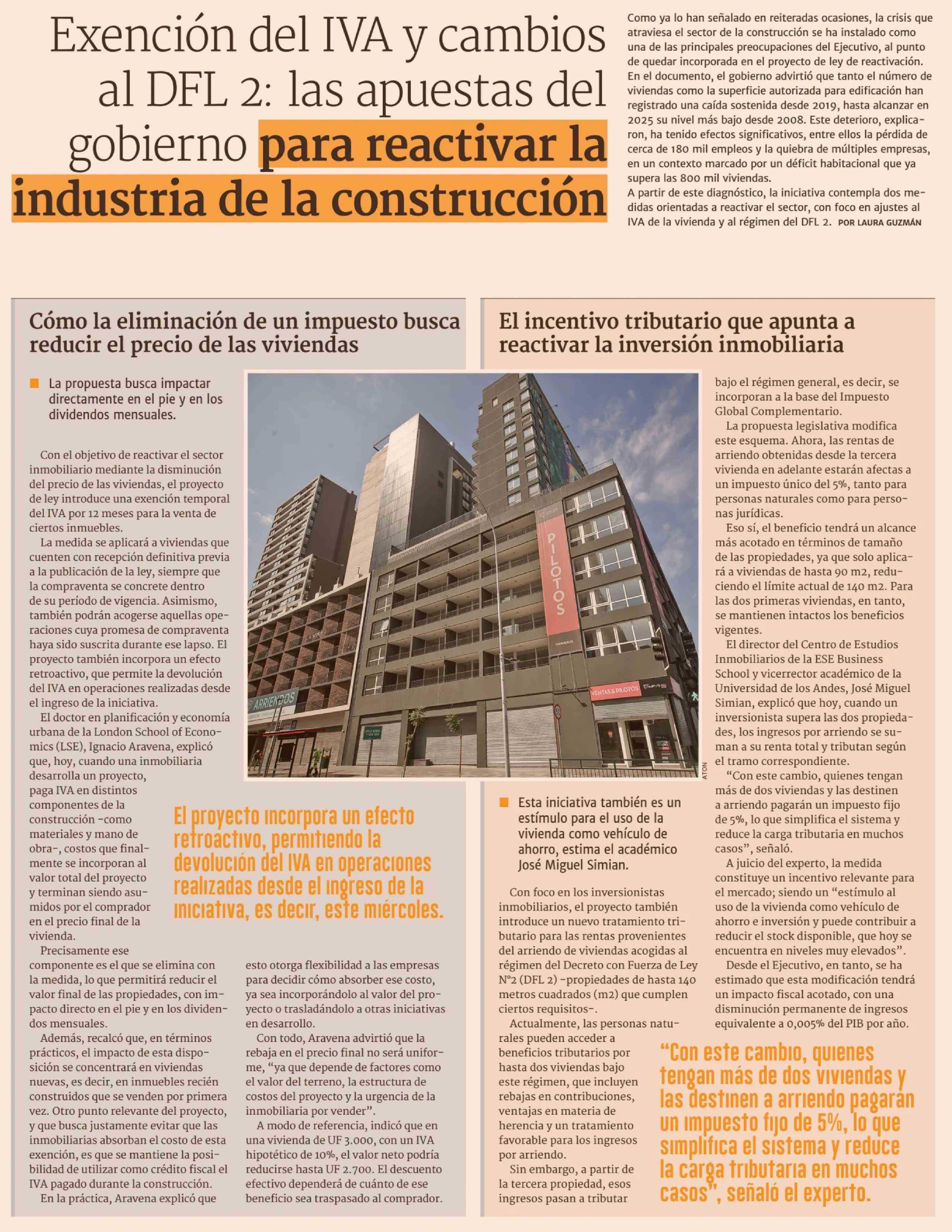 Exención del IVA y cambios al DFL 2: las apuestas del gobierno para reactivar la industria de la construcción 23-04-2026 Diario Financiero |