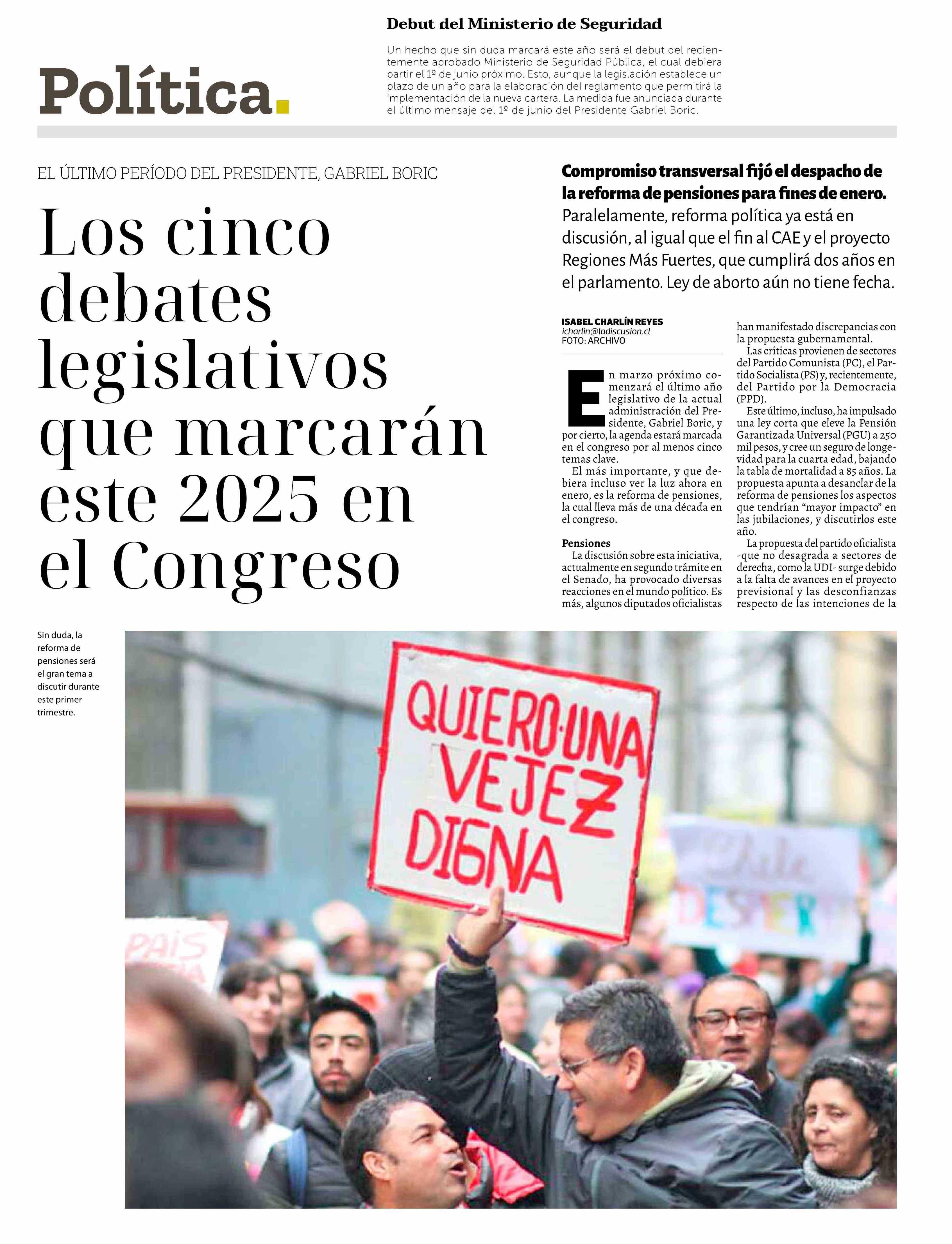 Los cinco debates legislativos que marcarán este 2023 en el Congreso 05-01-2025 La Discusión |