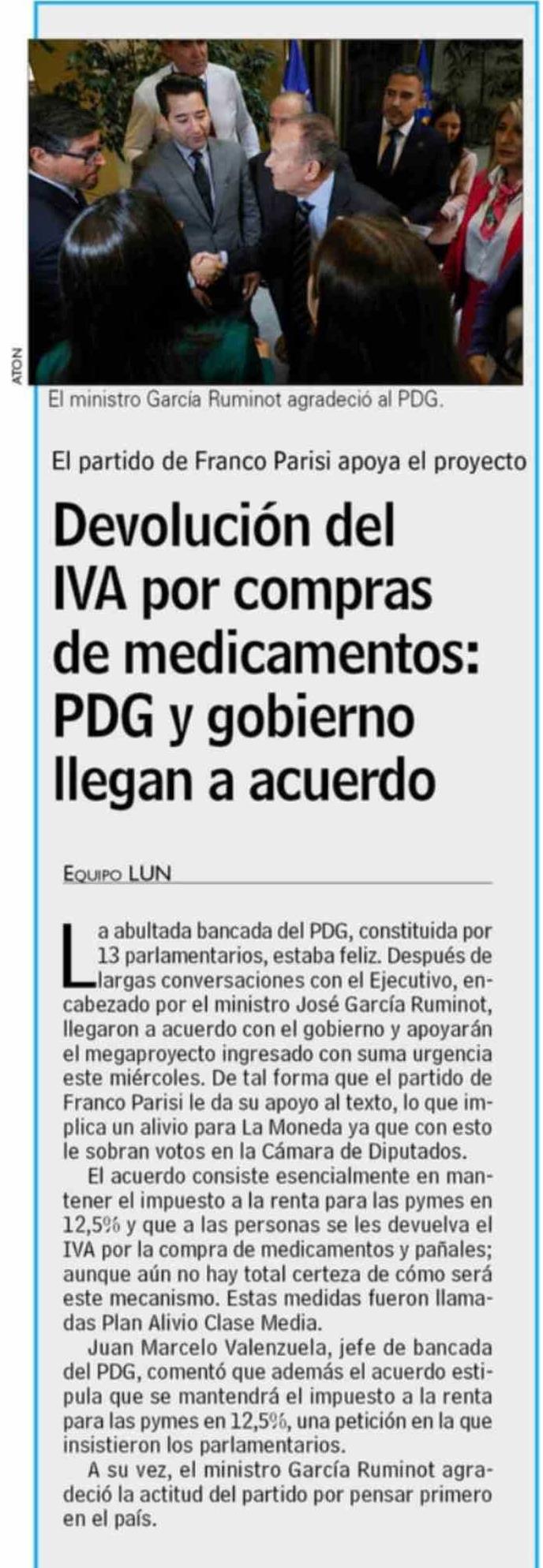 | Título: | Devolución del IVA por compras de medicamentos: PDG y gobierno llegan a acuerdo |