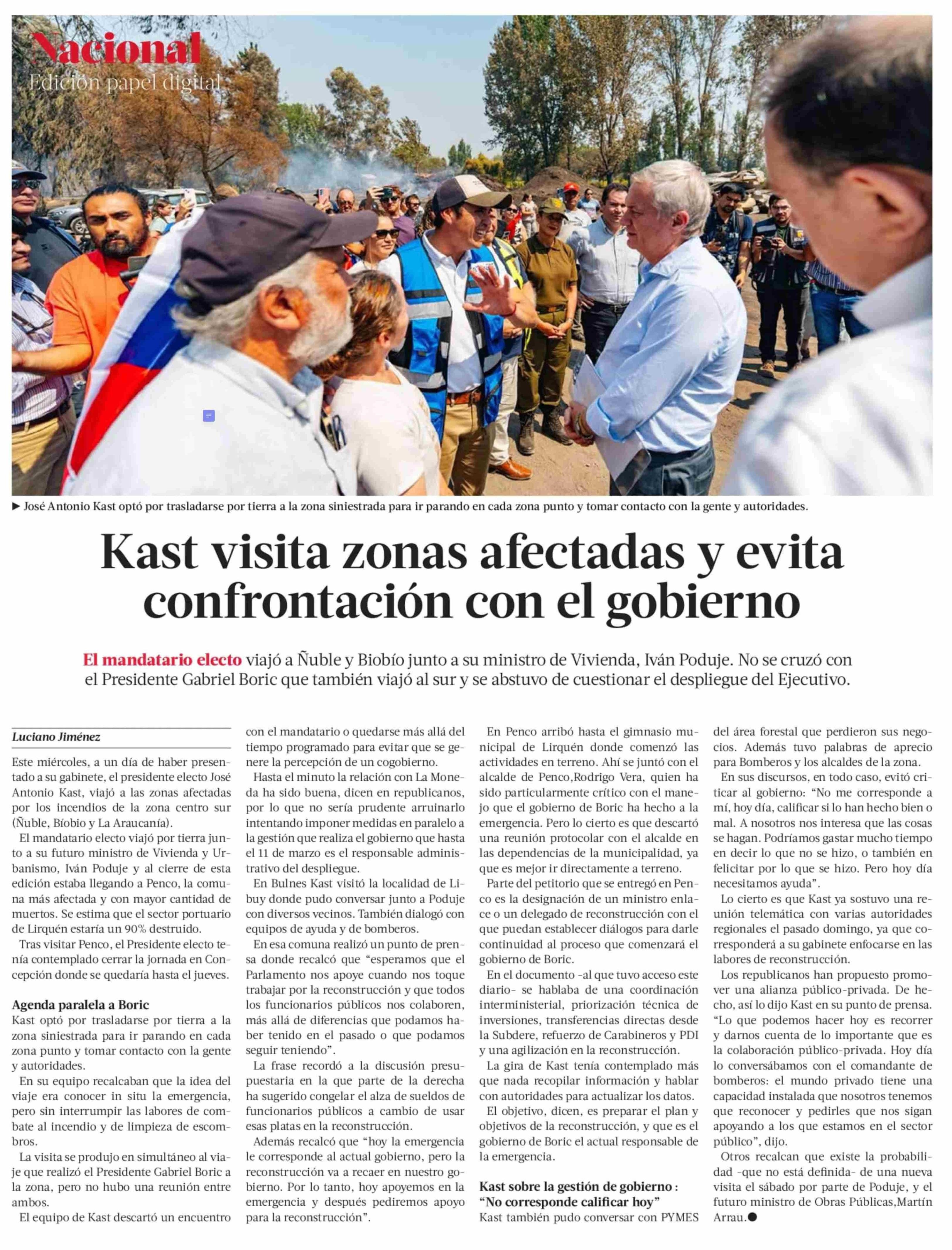 Título: Kast visita zonas afectadas y evita confrontación con el gobierno