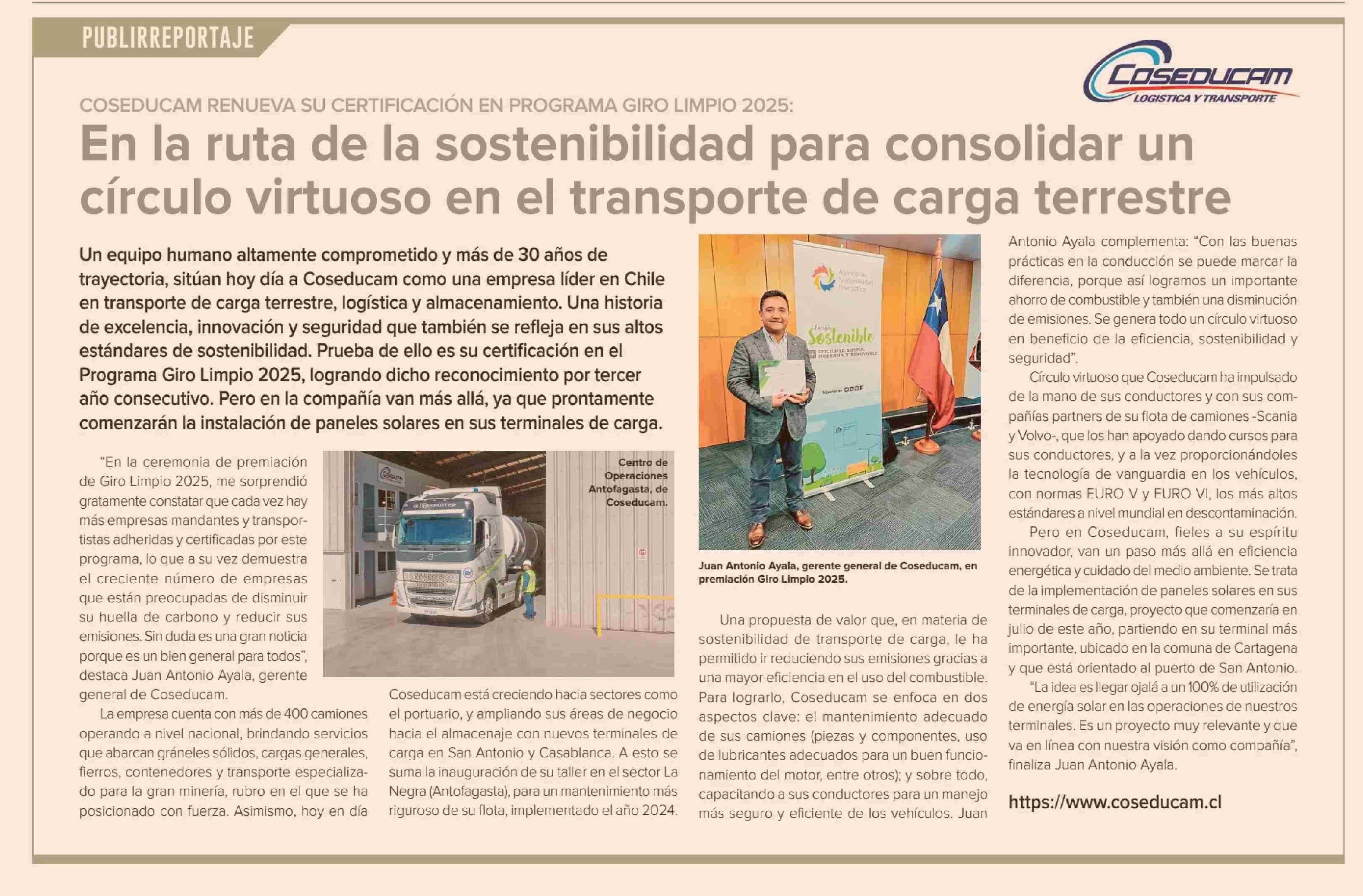 En la ruta de la sostenibilidad para consolidar un círculo virtuoso en el transporte de carga terrestre 06-06-2025 Diario Financiero |
