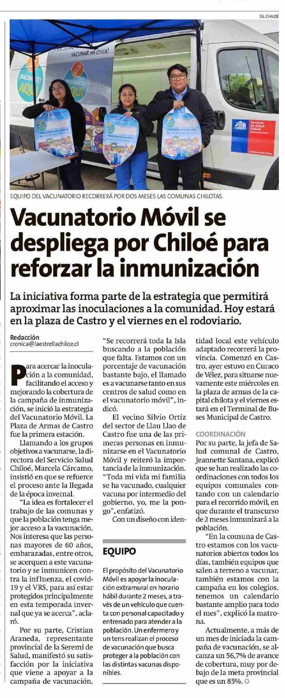Vacunatorio Móvil se despliega por Chiloé para reforzar la inmunización 30-04-2025 La Estrella de Chiloé |
