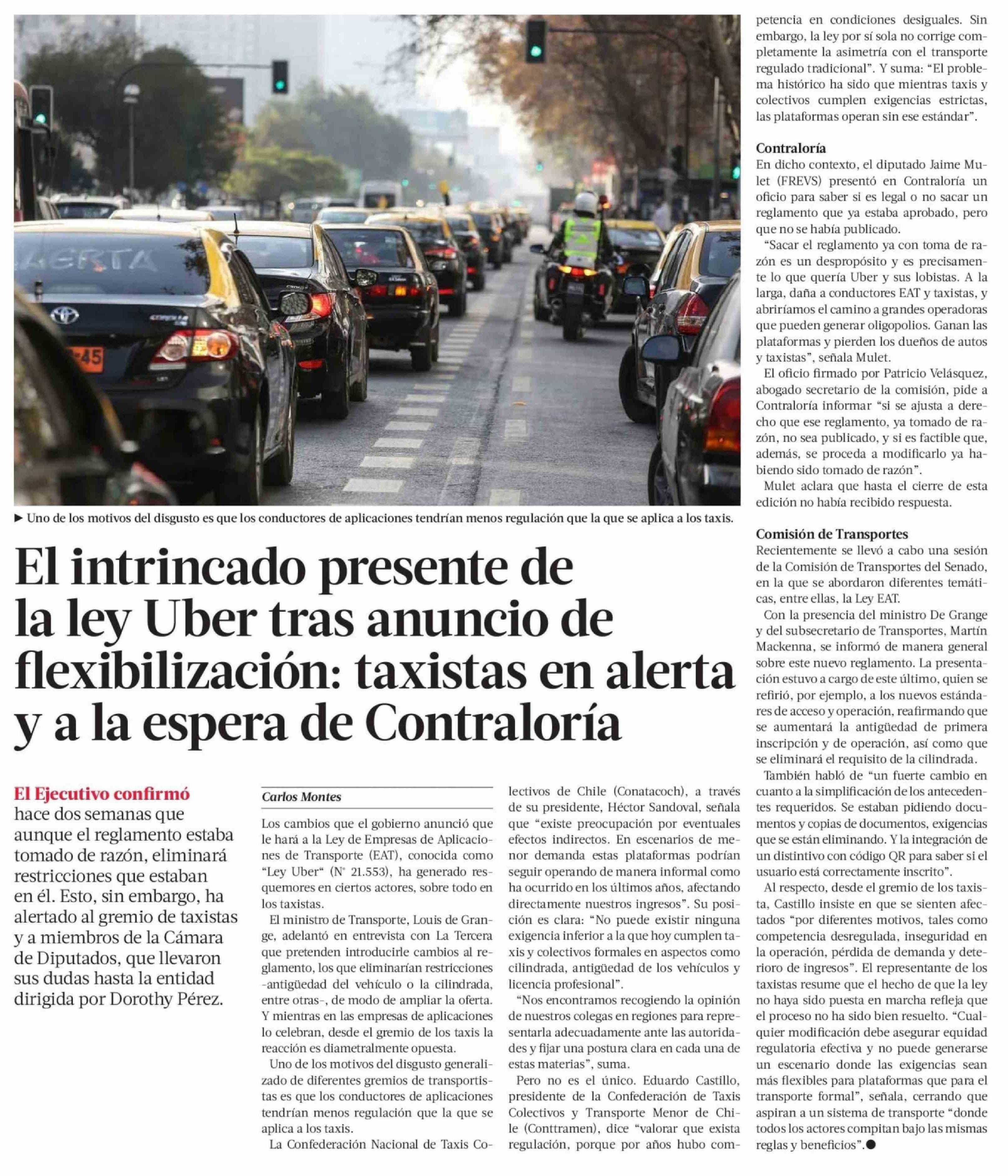 El intrincado presente de la ley Uber tras anuncio de flexibilización: taxistas en alerta y a la espera de Contraloría 21-04-2026 La Tercera |
