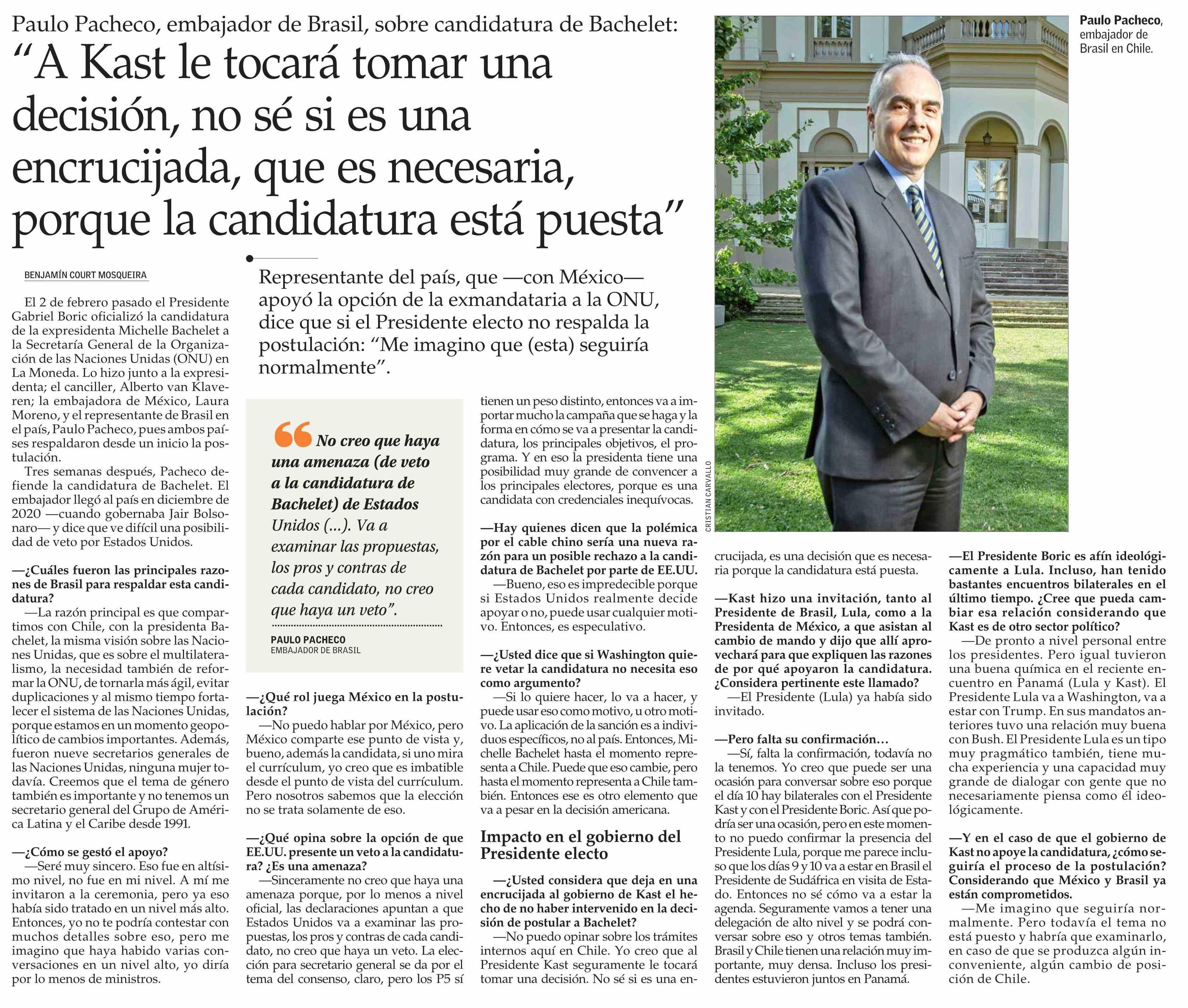 “A Kast le tocará tomar una decisión, no sé si es una encrucijada, que es necesaria, porque la candidatura está puesta” 23-02-2026 El Mercurio |