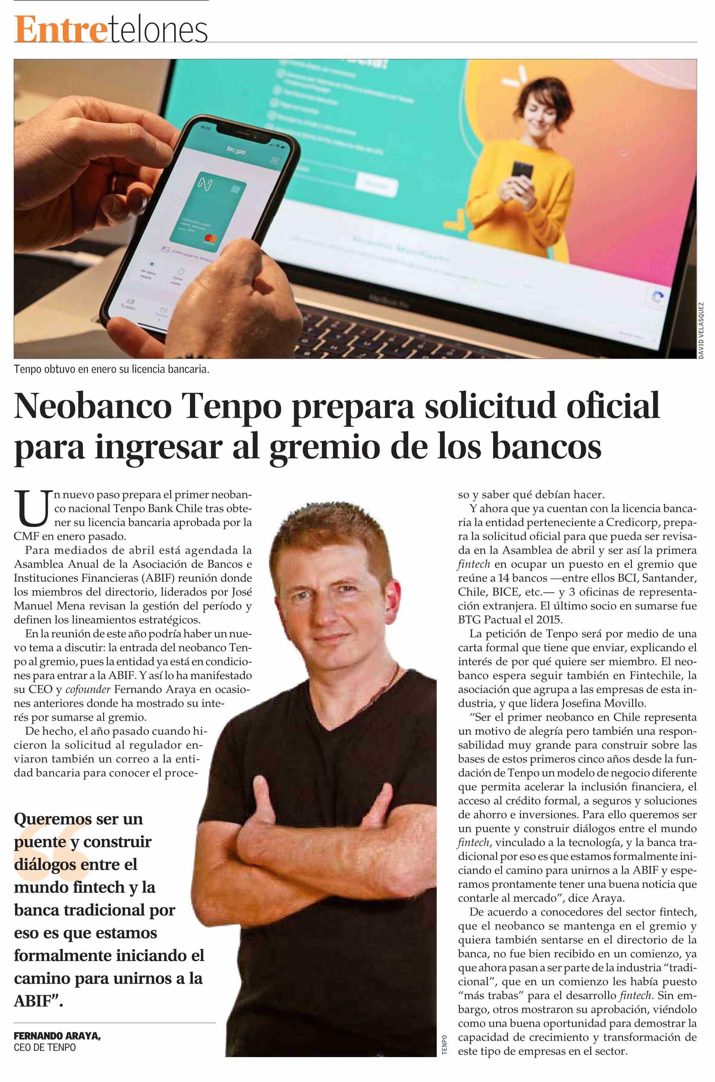 Título: Neobanco Tenpo prepara solicitud oficial para ingresar al gremio de los bancos
