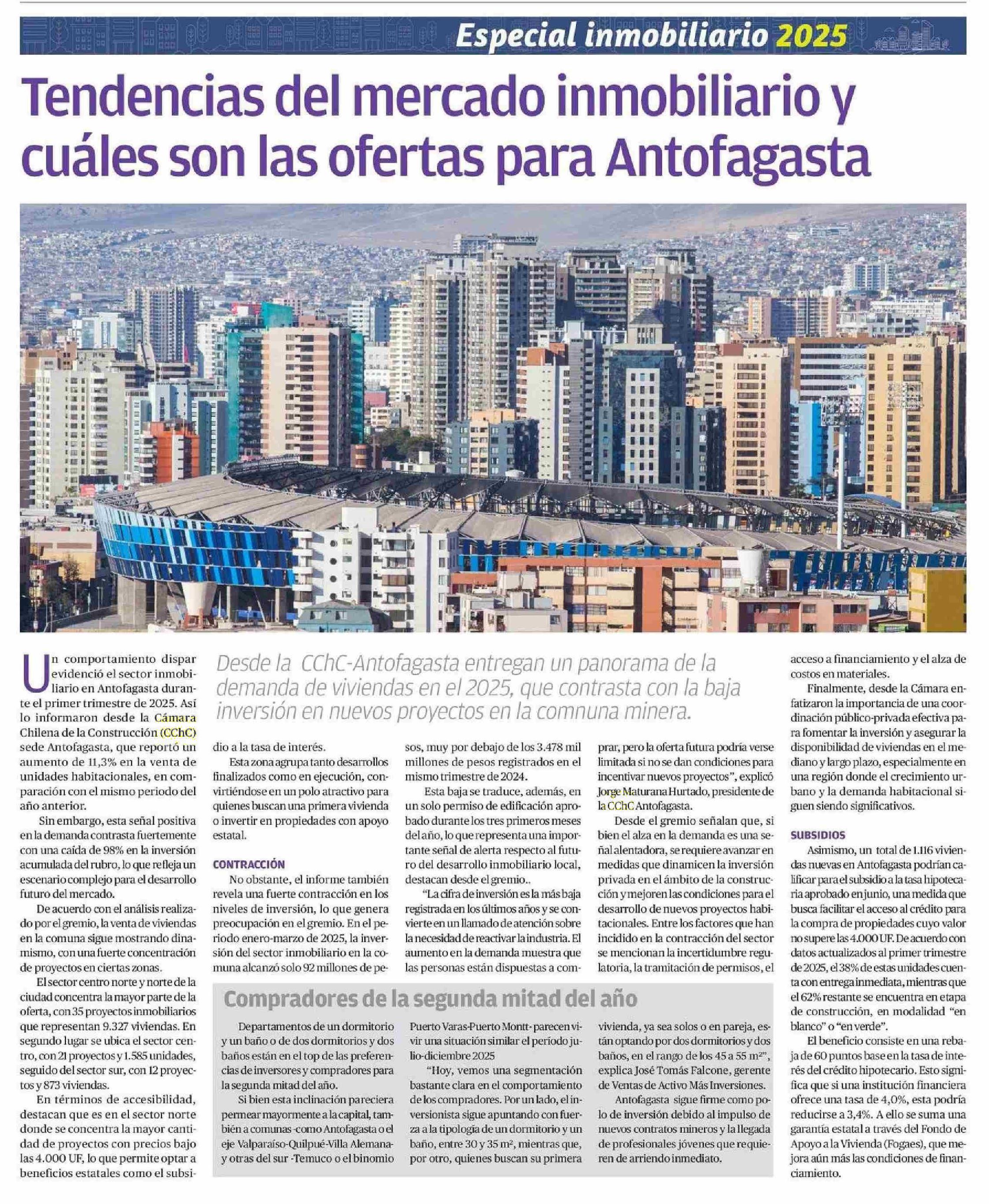 Tendencias del mercado inmobiliario y cuáles son las ofertas para Antofagasta 26-07-2025 El Mercurio de Antofagasta |
