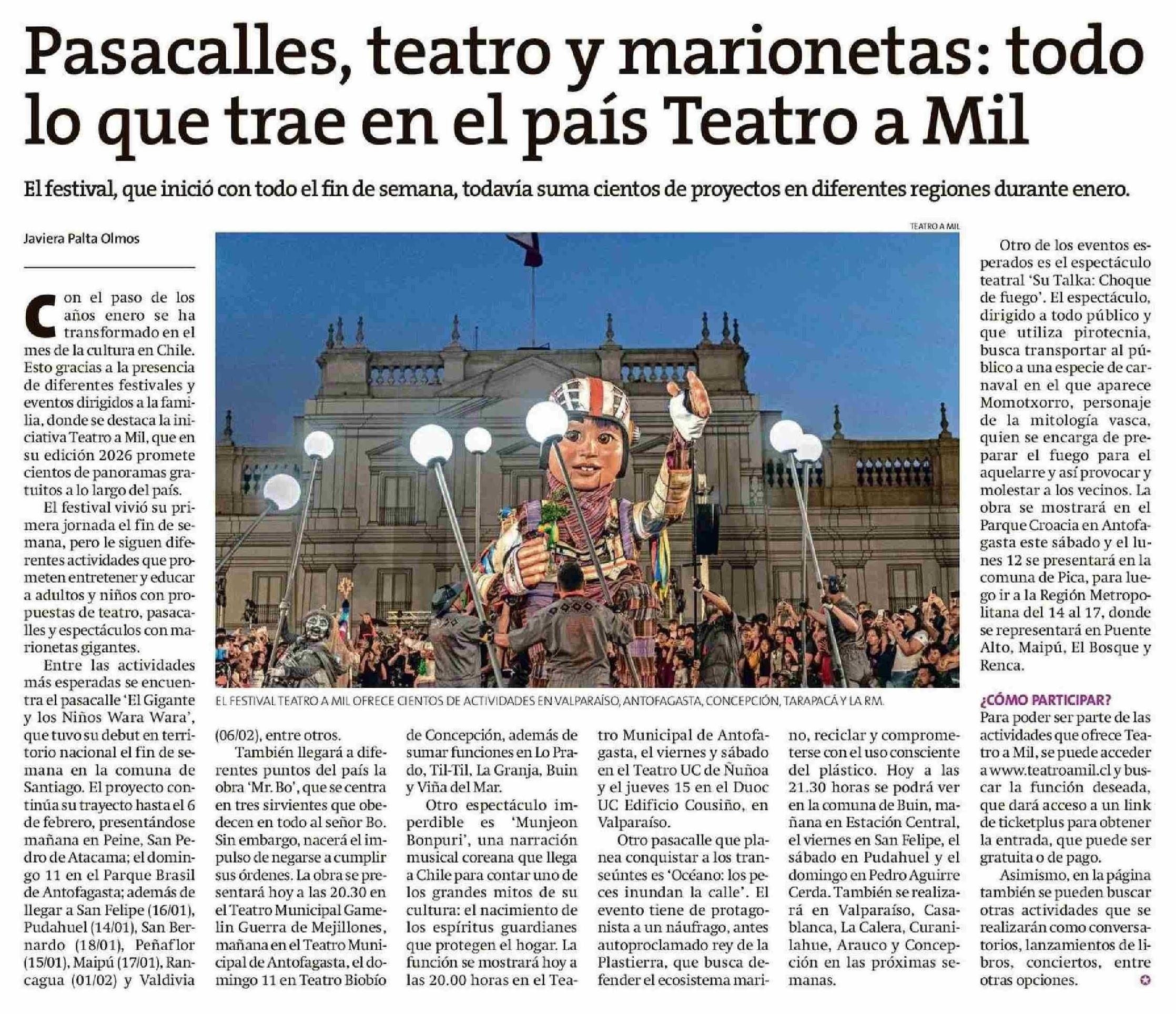 Título: Pasacalles, teatro y marionetas: todo lo que trae en el país Teatro a Mil