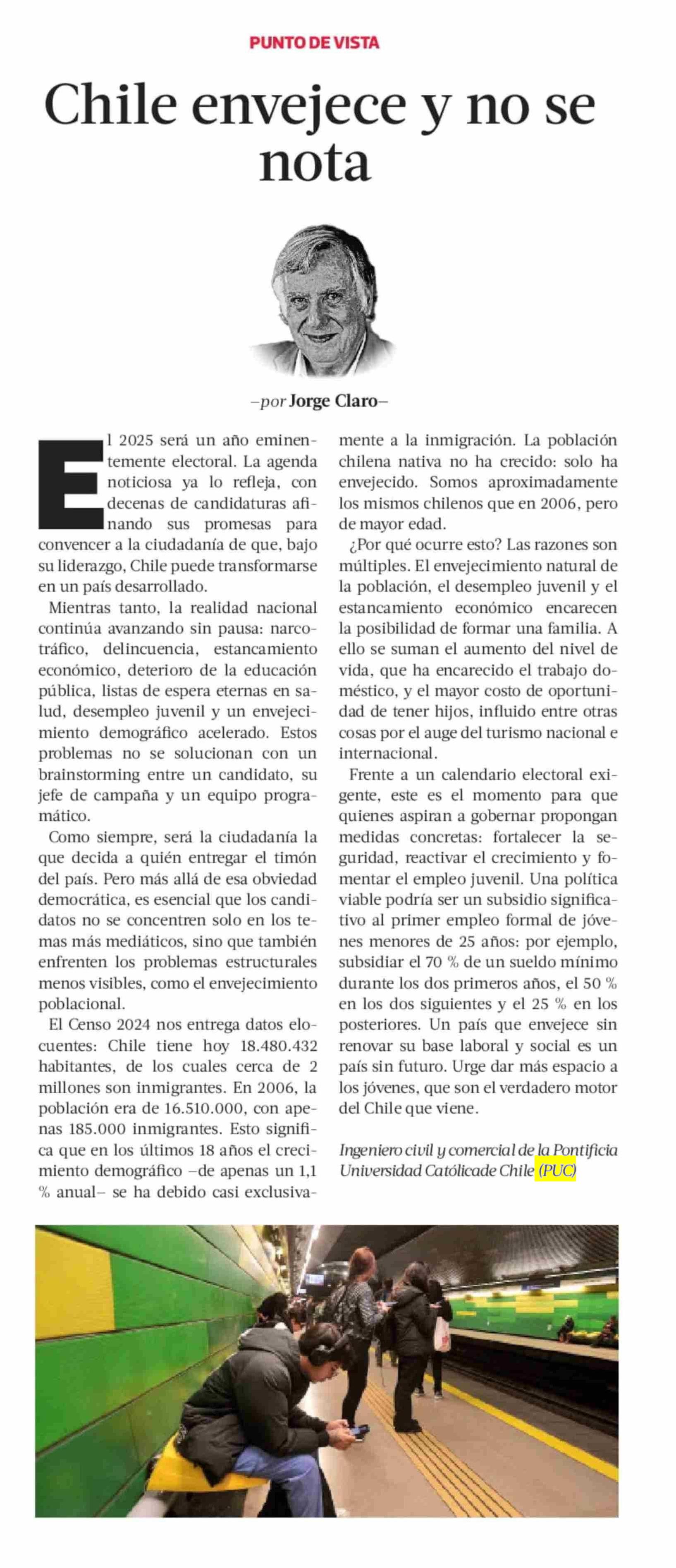 Chile envejece y no se nota 22-05-2025 La Tercera |