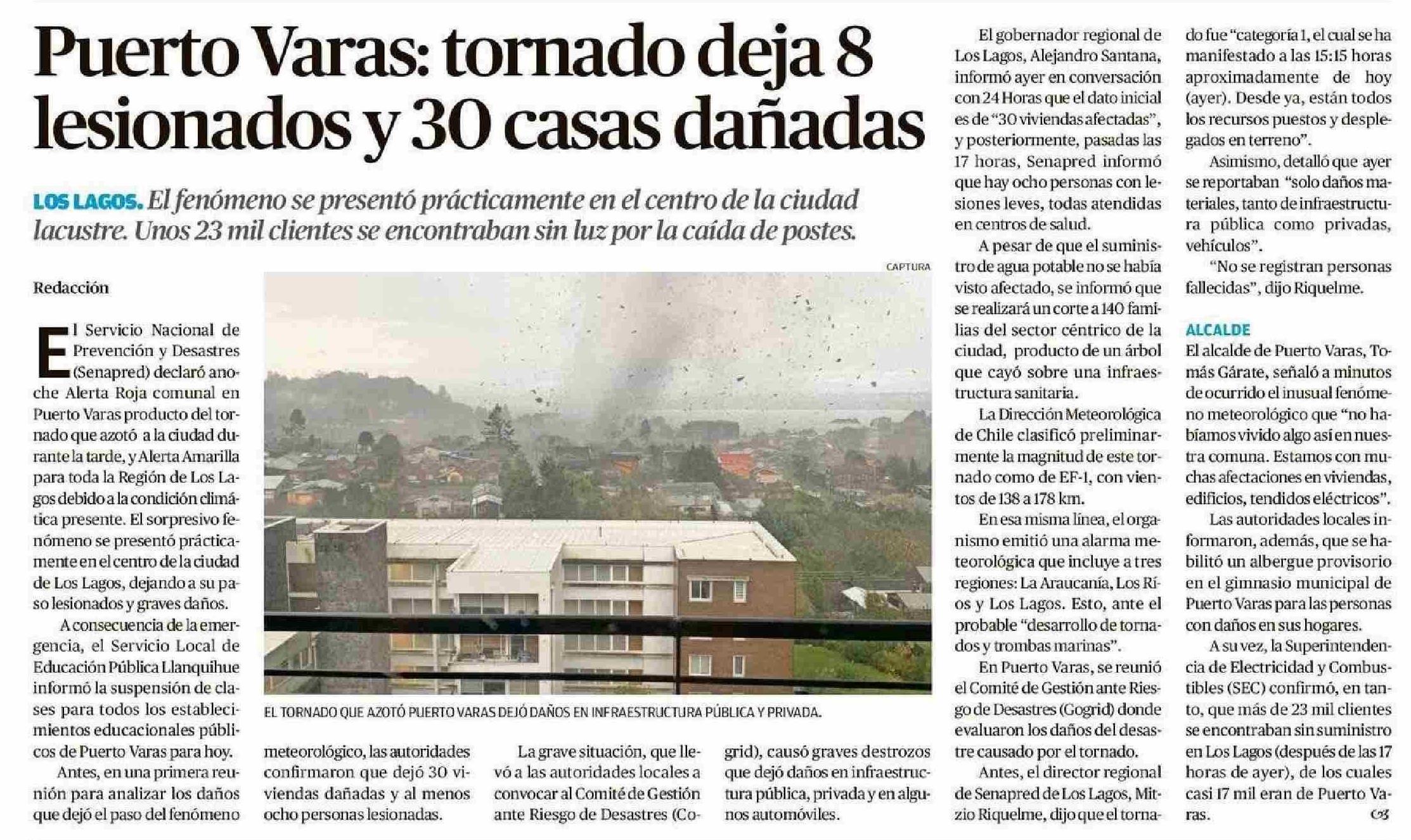 | Título: | Puerto Varas: tornado deja 8 lesionados y 30 casas dañadas |