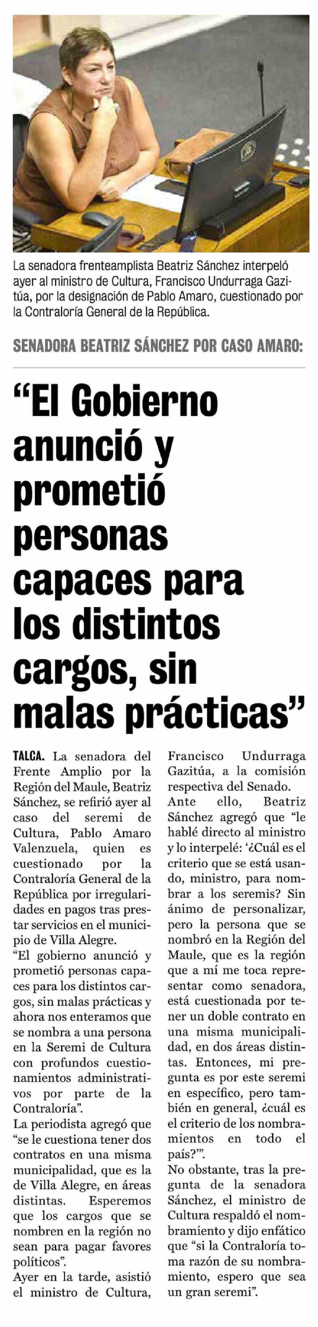 "El Gobierno anunció y prometió personas capaces para los distintos cargos, sin malas prácticas" 09-04-2026 La Prensa de Curicó |