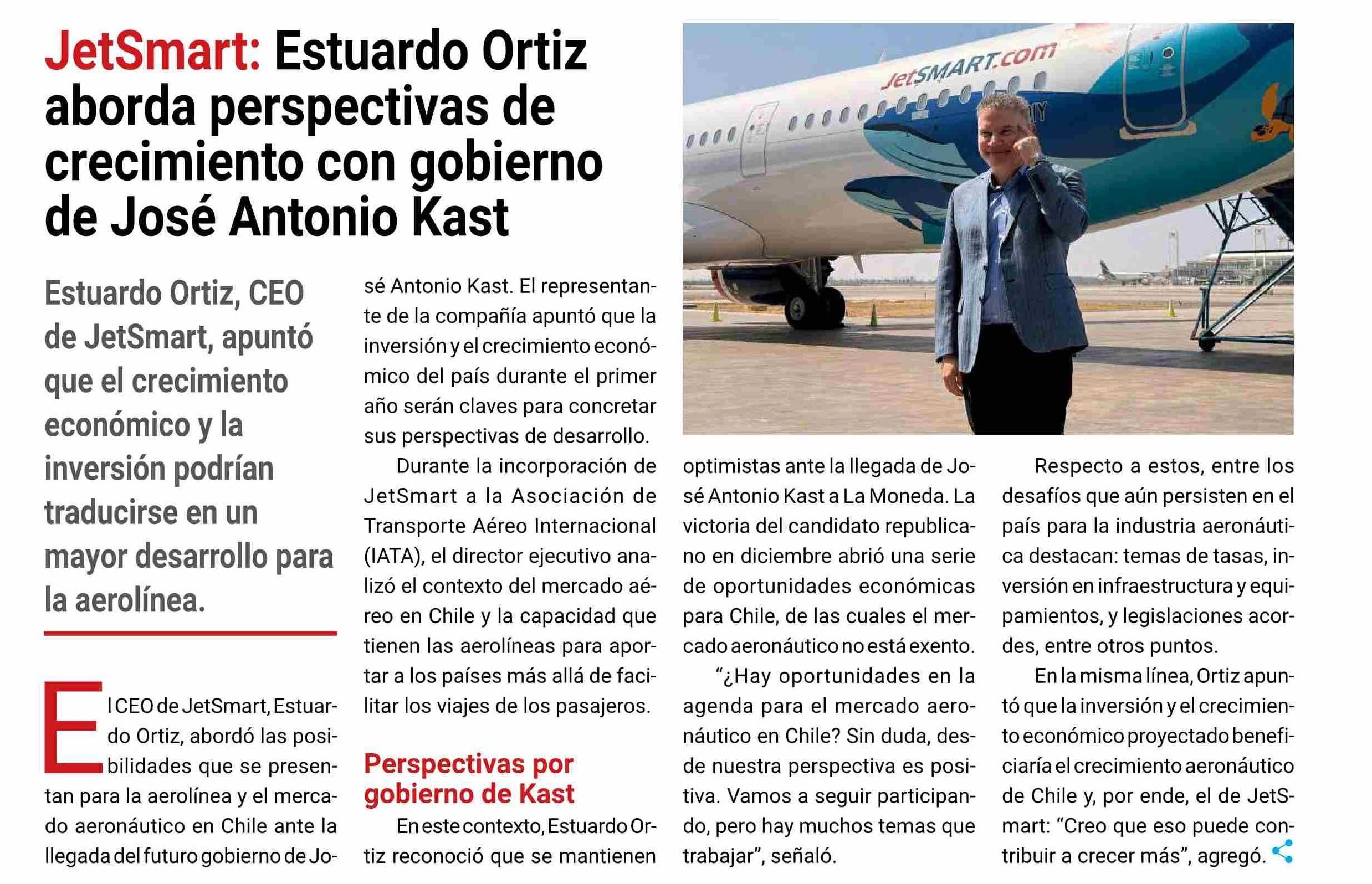 Título: JetSmart: Estuardo Ortiz aborda perspectivas de crecimiento con gobierno de José Antonio Kast