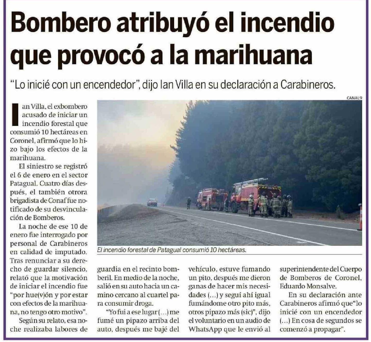 | Título: | Bombero atribuyó el incendio que provocó a la marihuana |