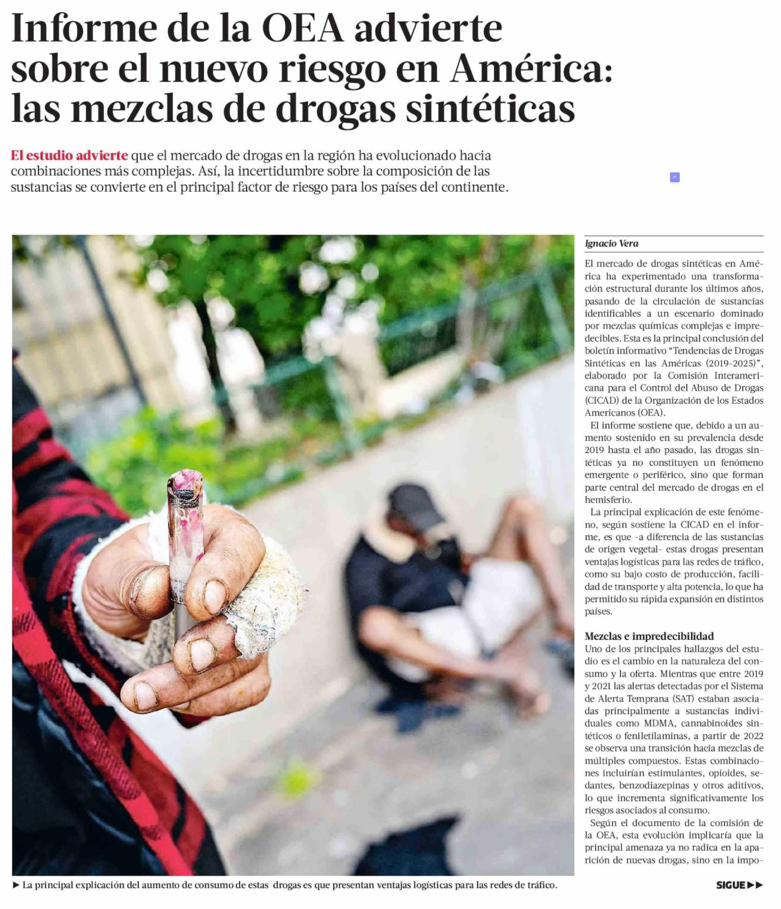 Informe de la OEA advierte sobre el nuevo riesgo en América: las mezclas de drogas sintéticas 23-04-2026 La Tercera |