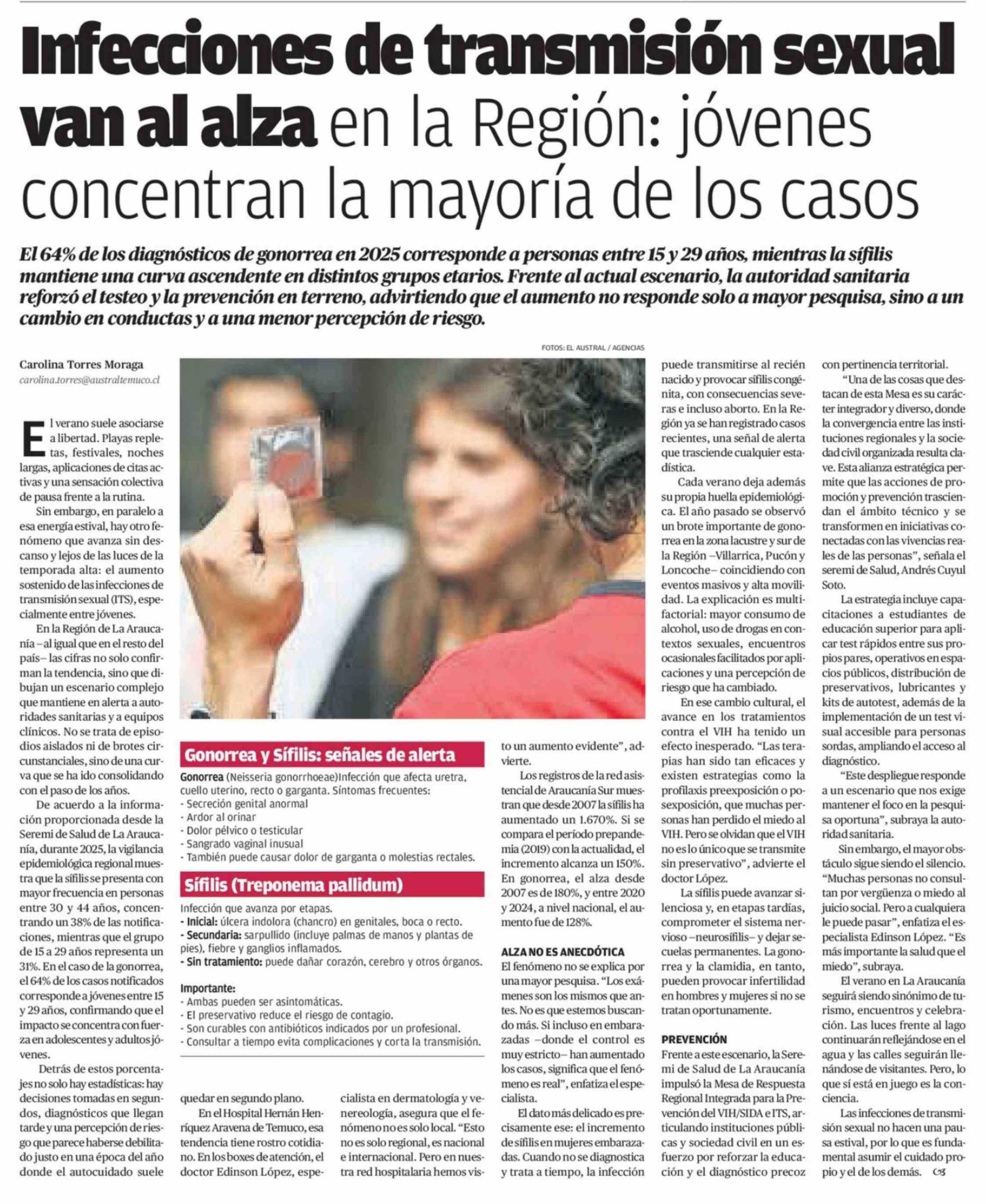 Título: Infecciones de transmisión sexual van al alza en la Región: jóvenes concentran la mayoría de los casos