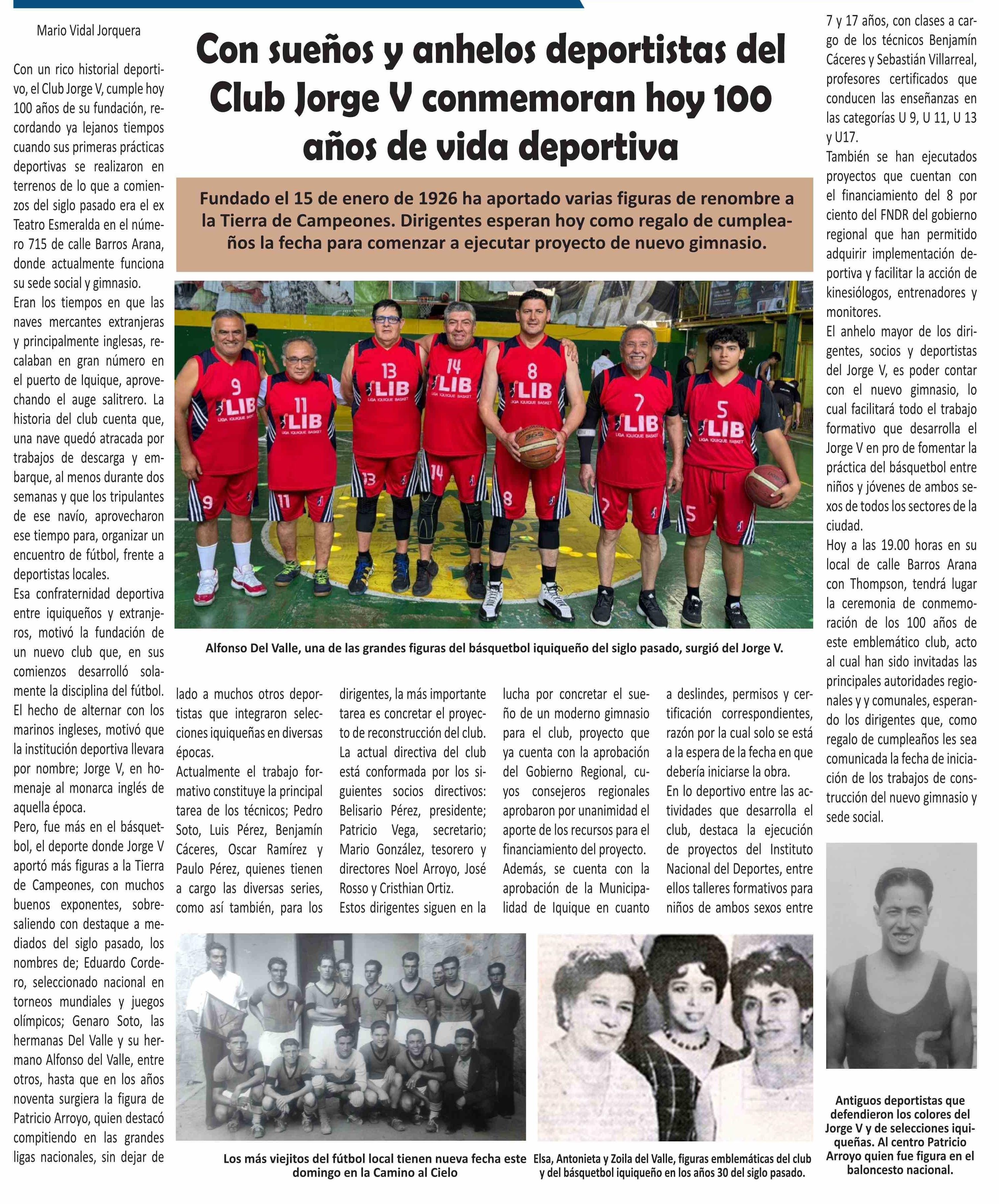 Con sueños y anhelos deportistas del Club Jorge V conmemoran hoy 100 años de vida deportiva 15-01-2026 El Longino |