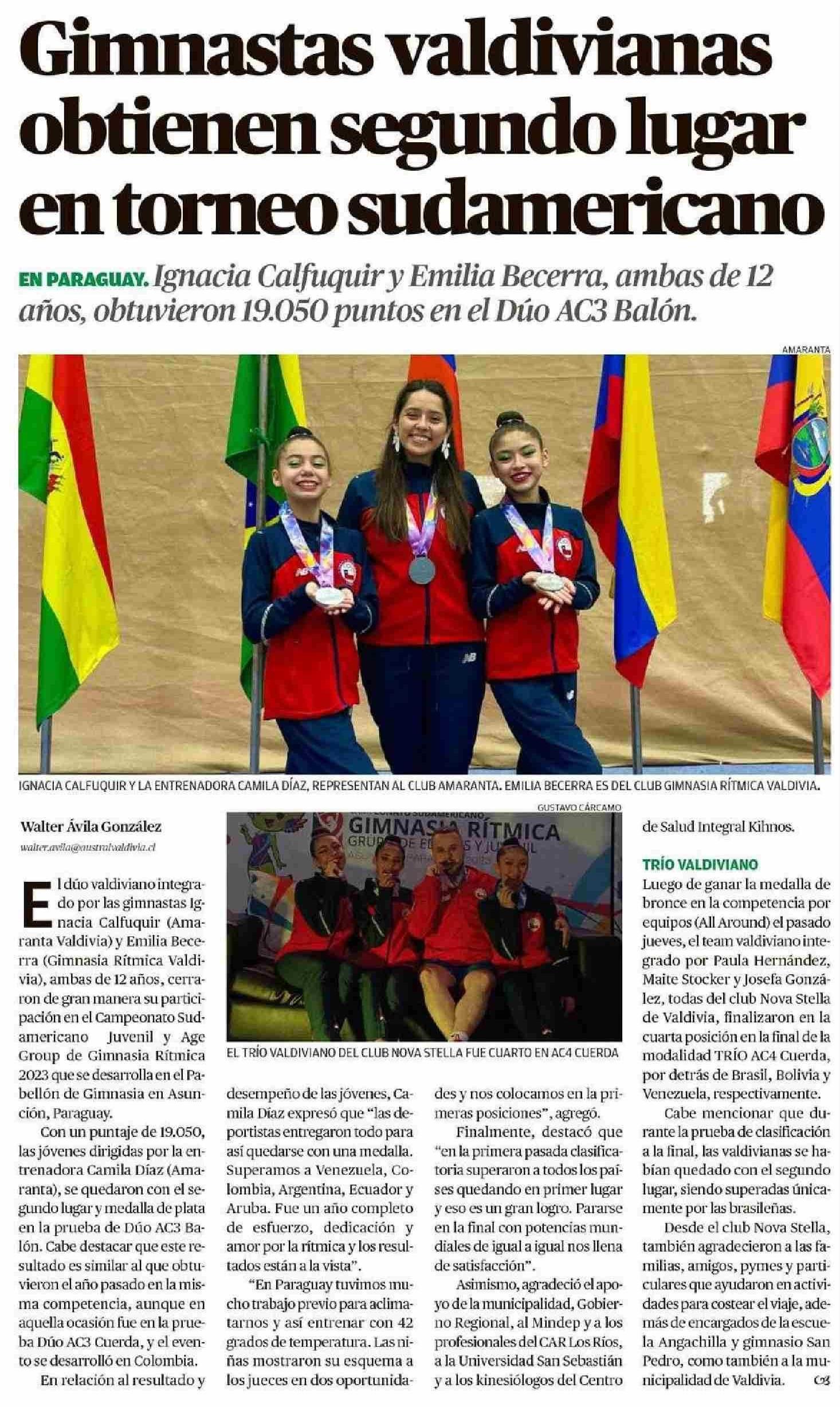 Gimnastas valdivianas obtienen segundo lugar en torneo sudamericano 03-12-2023 Diario Austral Región de Los Ríos |