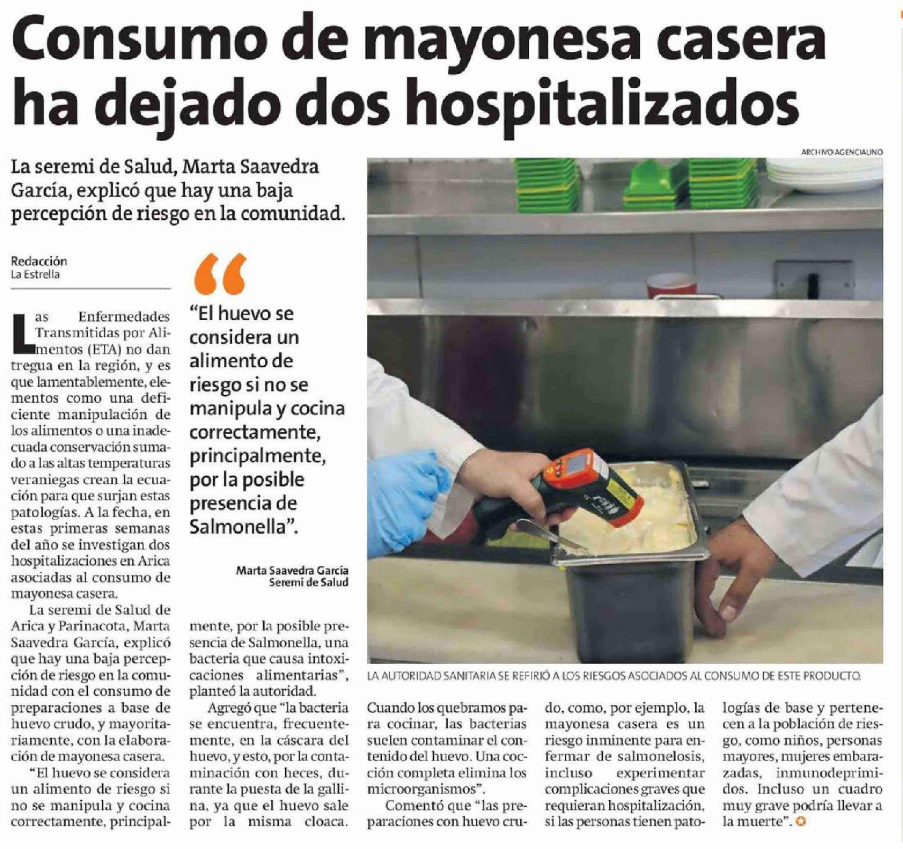 Consumo de mayonesa casera ha dejado dos hospitalizados 01-02-2026 La Estrella de Arica |