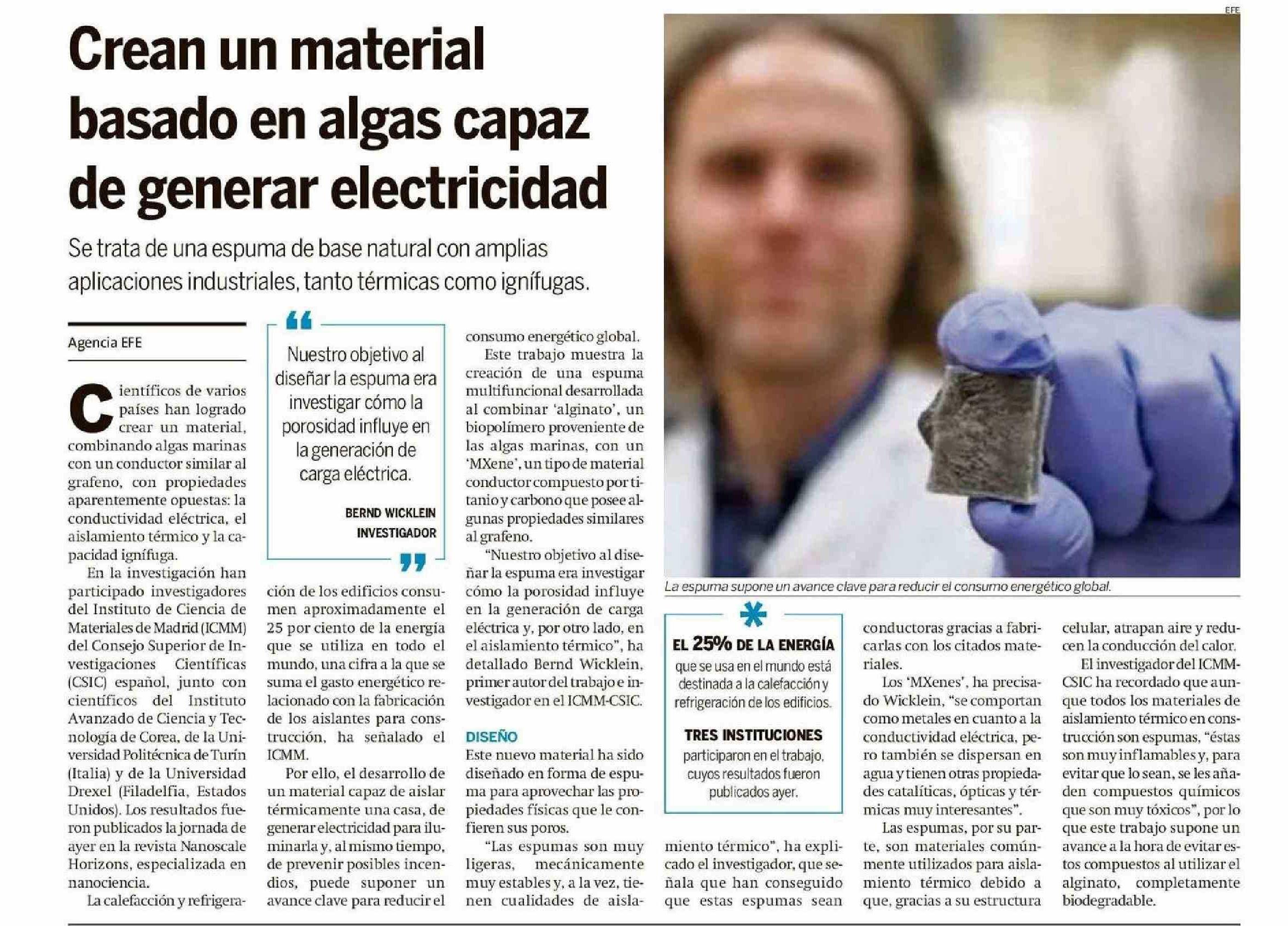 | Título: | Crean un material basado en algas capaz de generar electricidad |