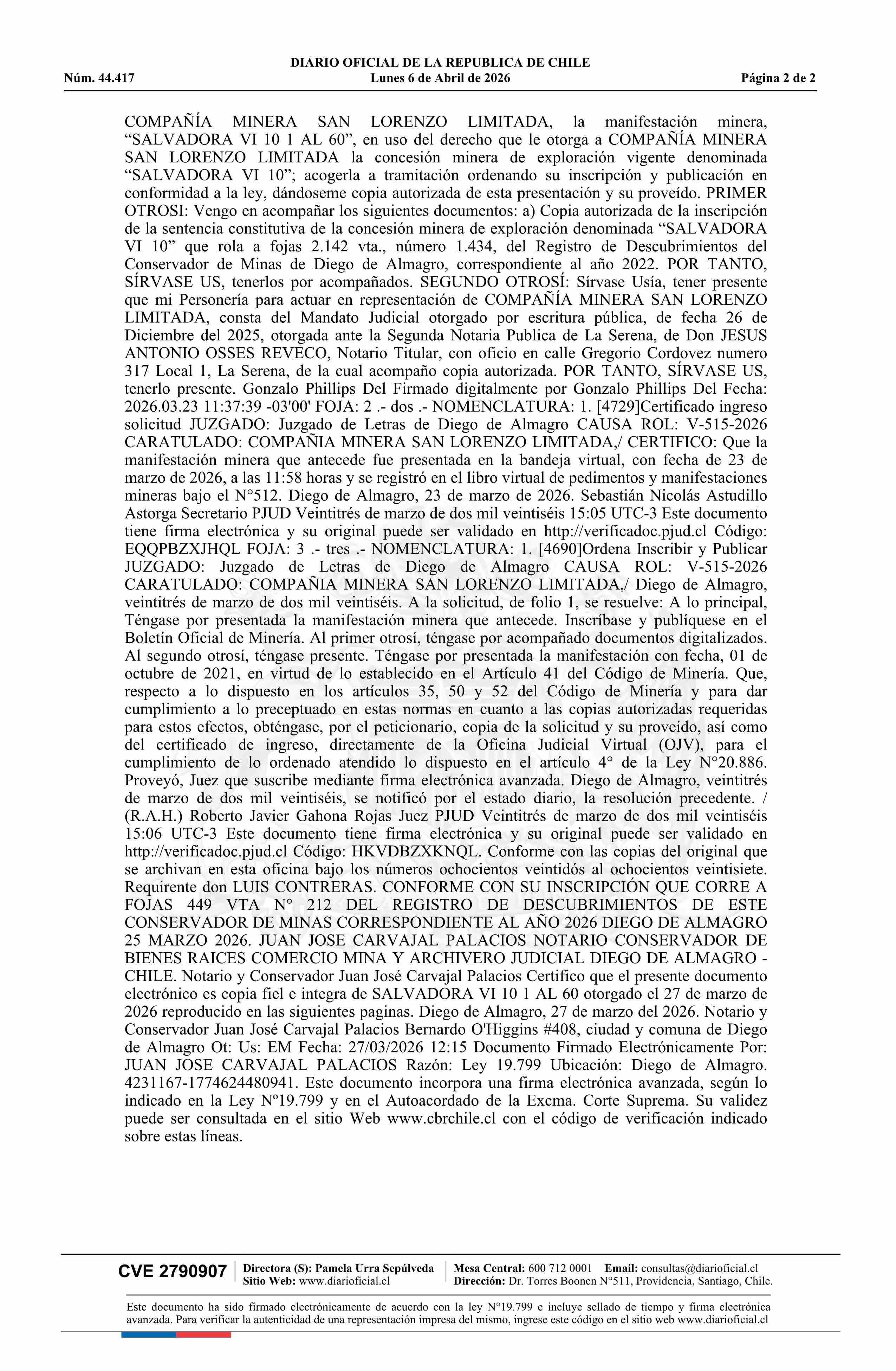06-04-2026 DIARIO OFICIAL CHILE - BOLETÍN OFICIAL DE MINERÍA