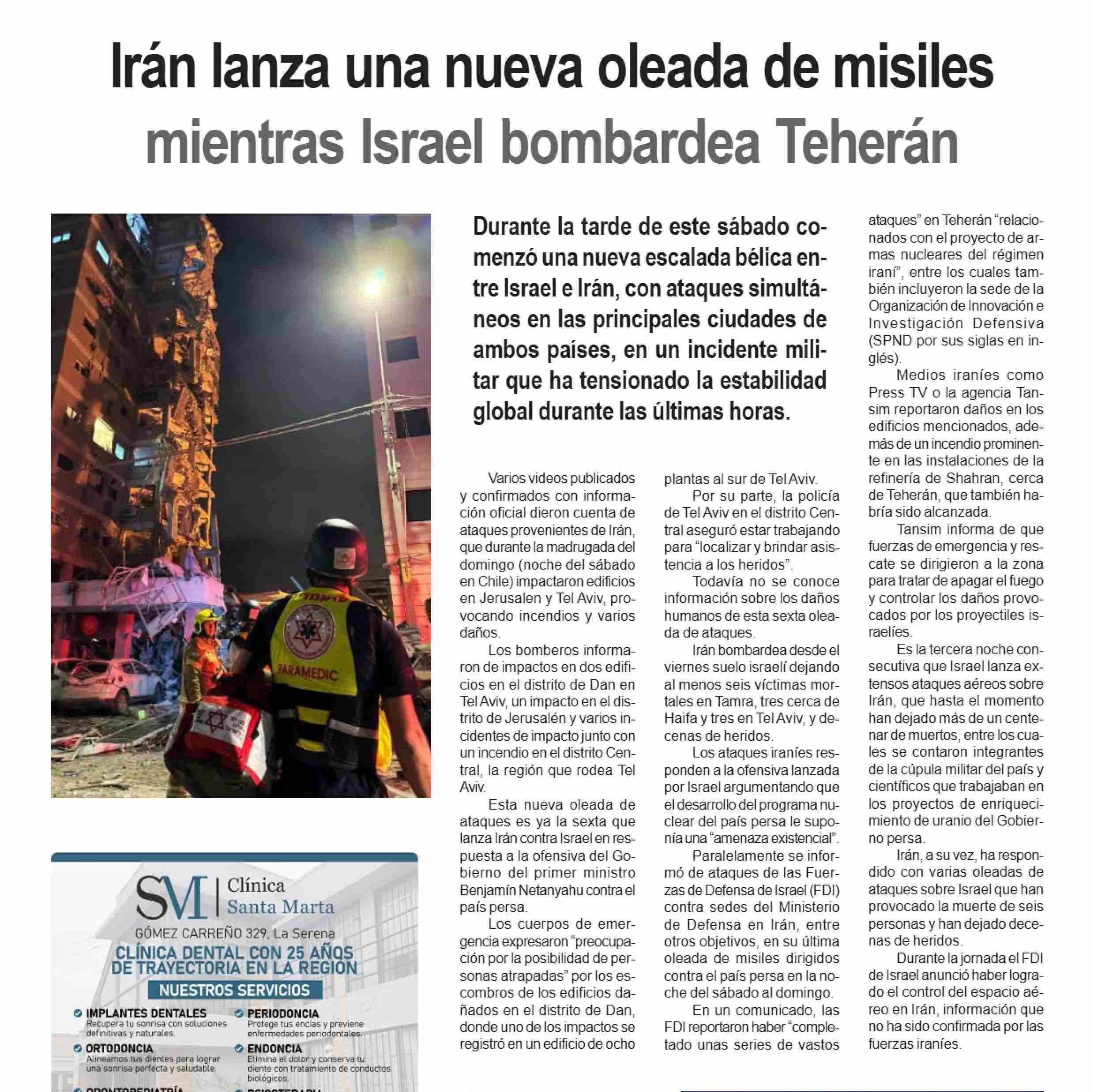 Irán lanza una nueva oleada de misiles mientras Israel bombardea Teherán 15-06-2025 Diario la Región |