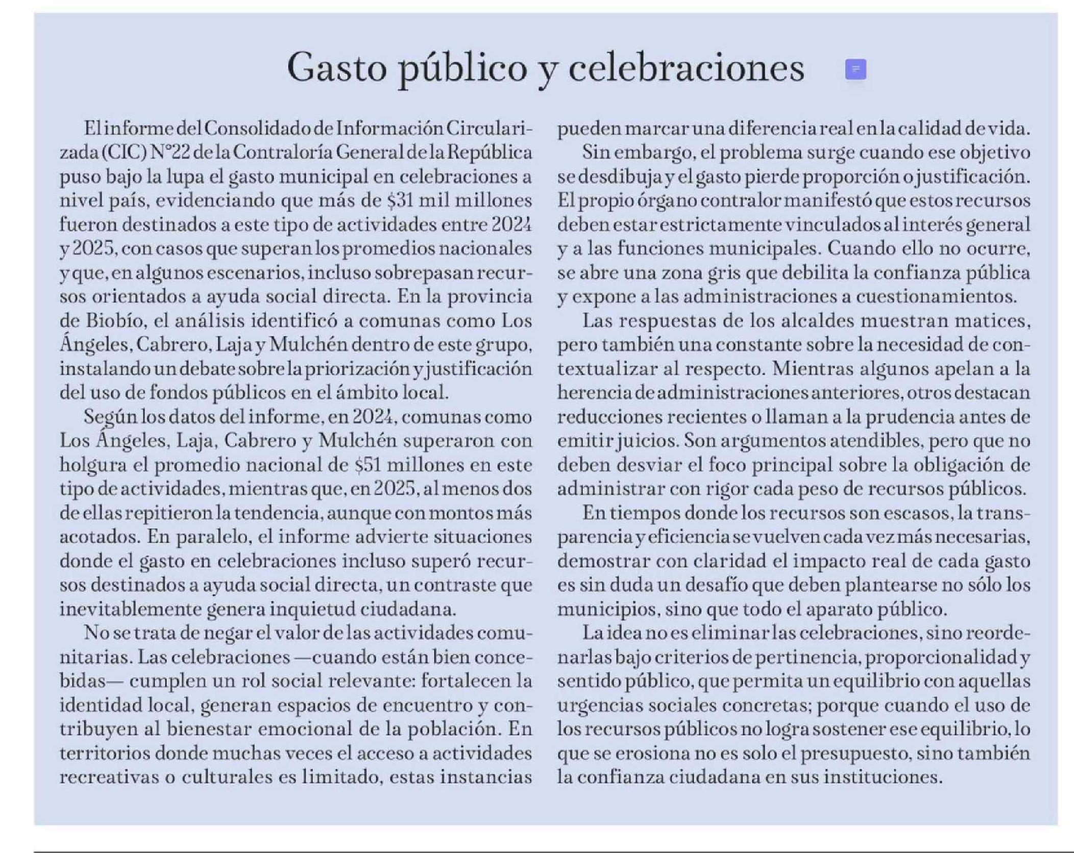 | Título: | EDITORIAL: Gasto público y celebraciones |