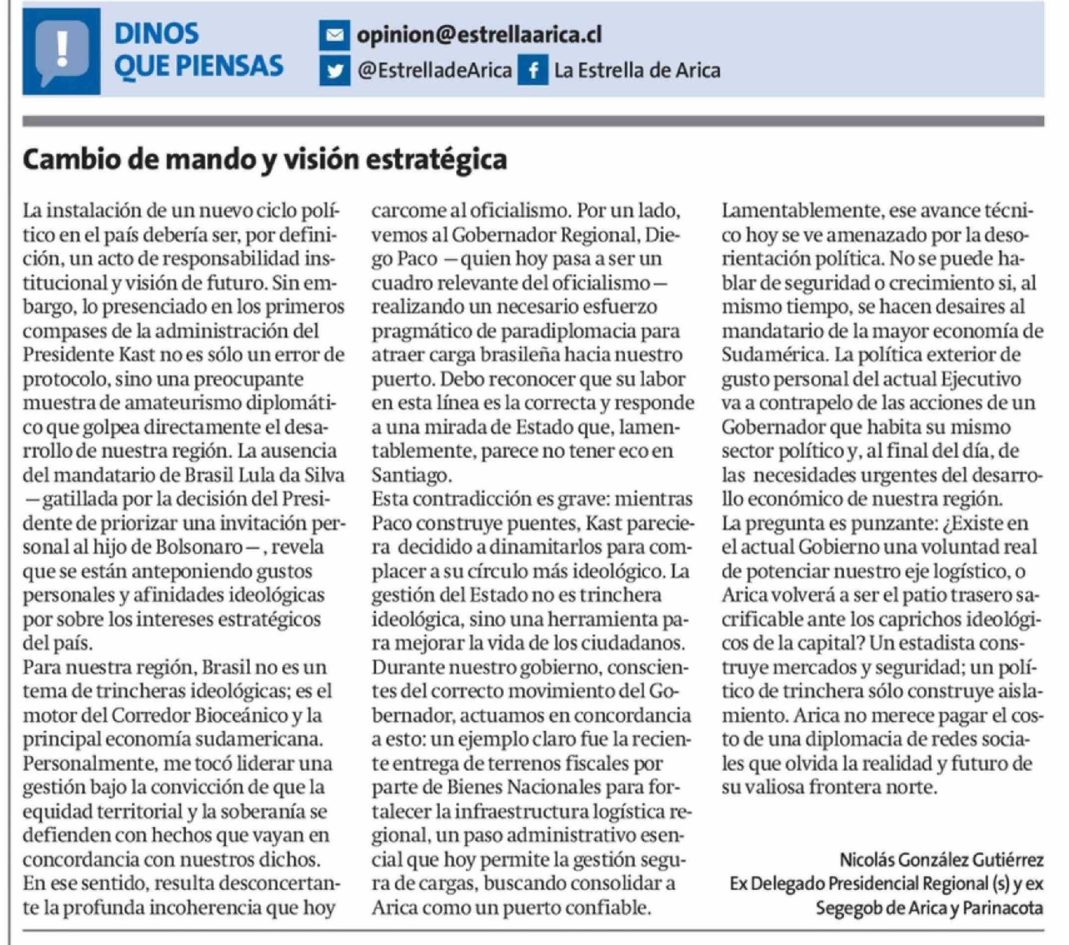Fecha: 15-03-2026 Sector: Columnas de Opinión Región: Región de Arica y Parinacota