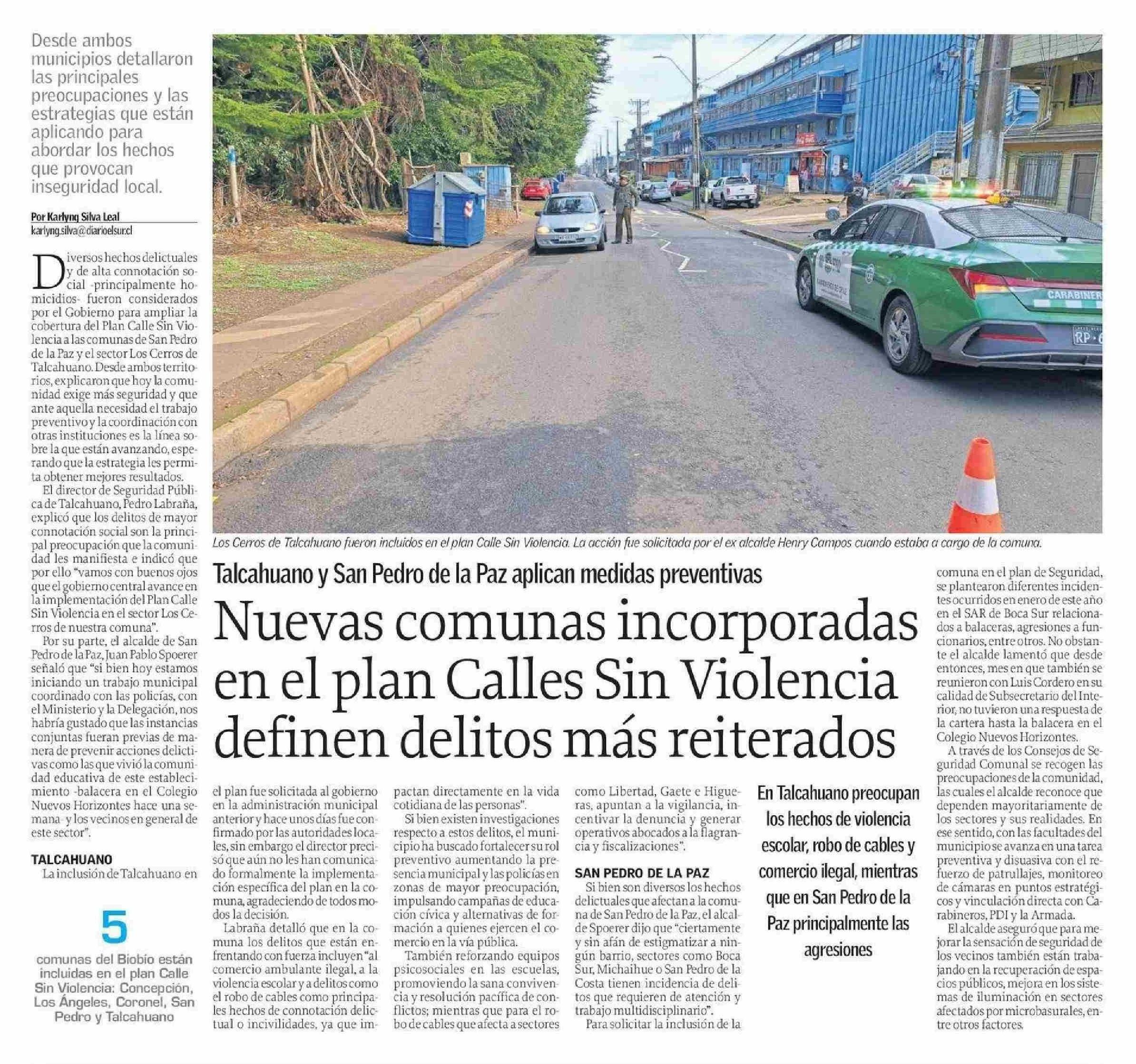 Nuevas comunas incorporadas en el plan Calles Sin Violencia definen delitos más reiterados 06-06-2025 El Sur |