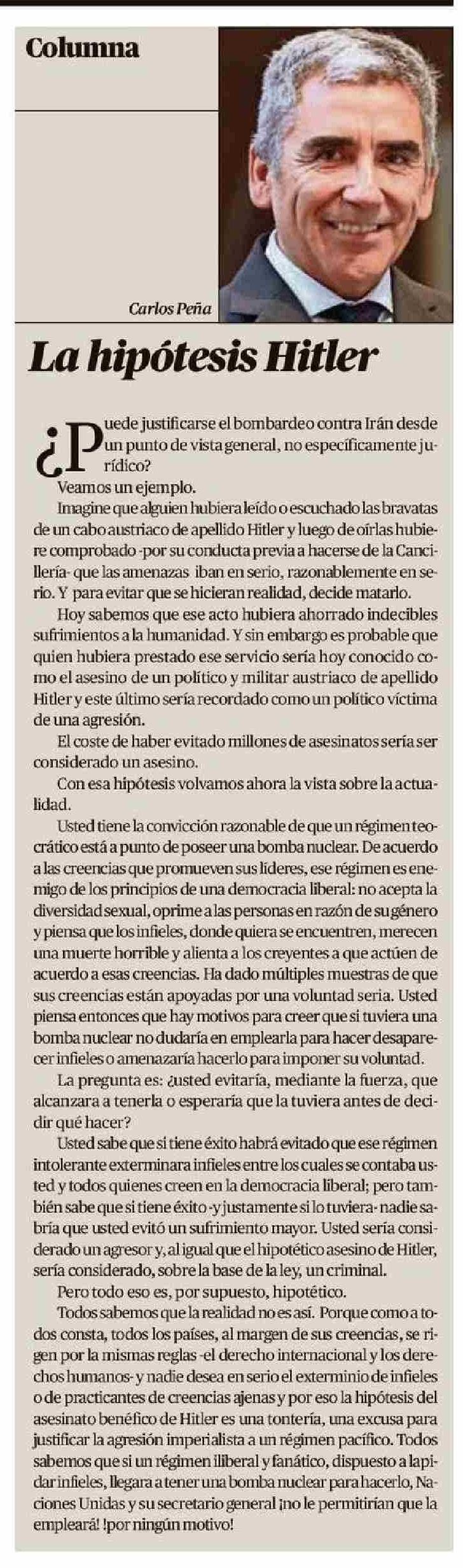 Columnas de Opinión: La hipótesis Hitler 25-06-2025 El Mercurio de Valparaíso |