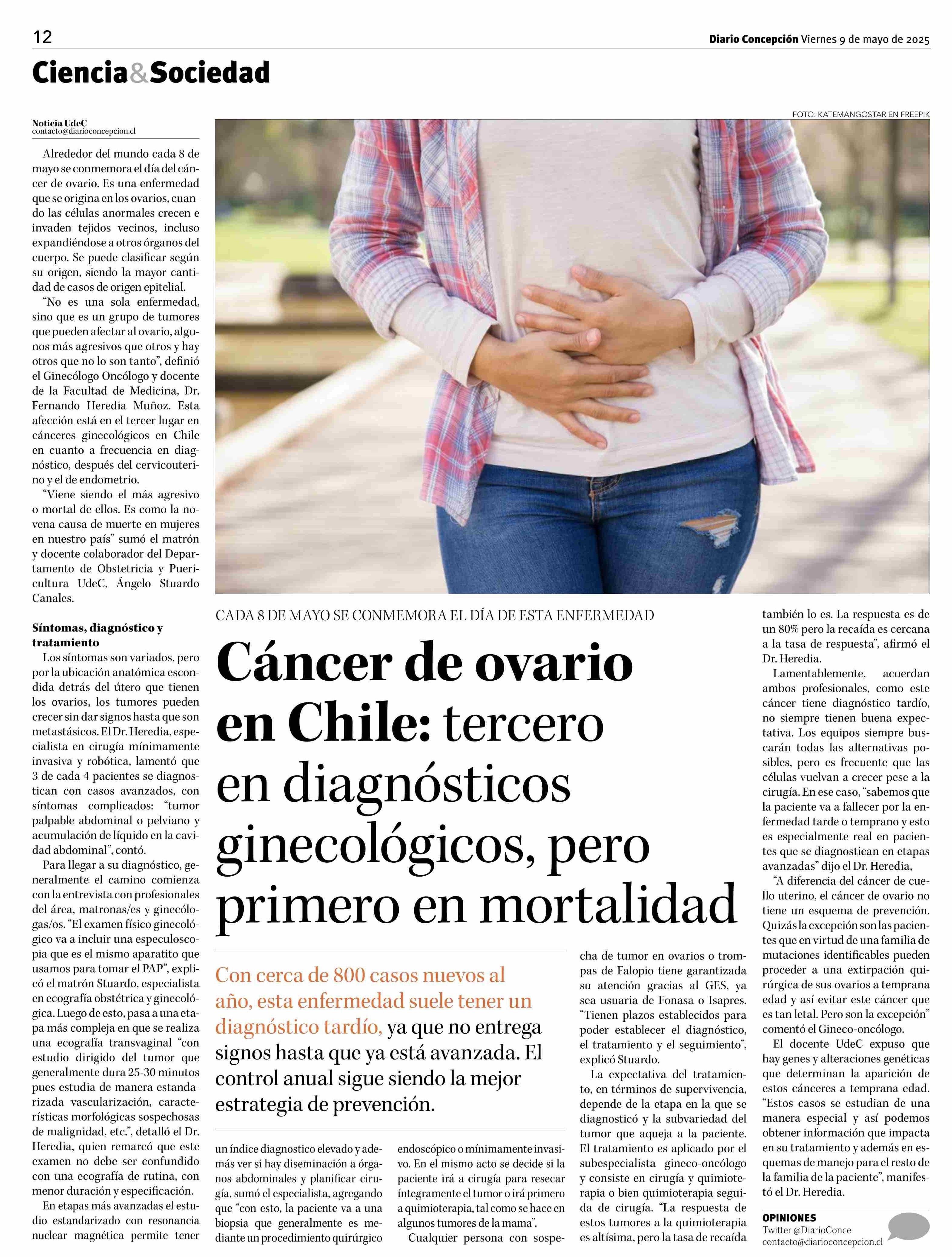 Cáncer de ovario en Chile: tercero en diagnósticos ginecológicos, pero primero en mortalidad 09-05-2025 Diario Concepción |