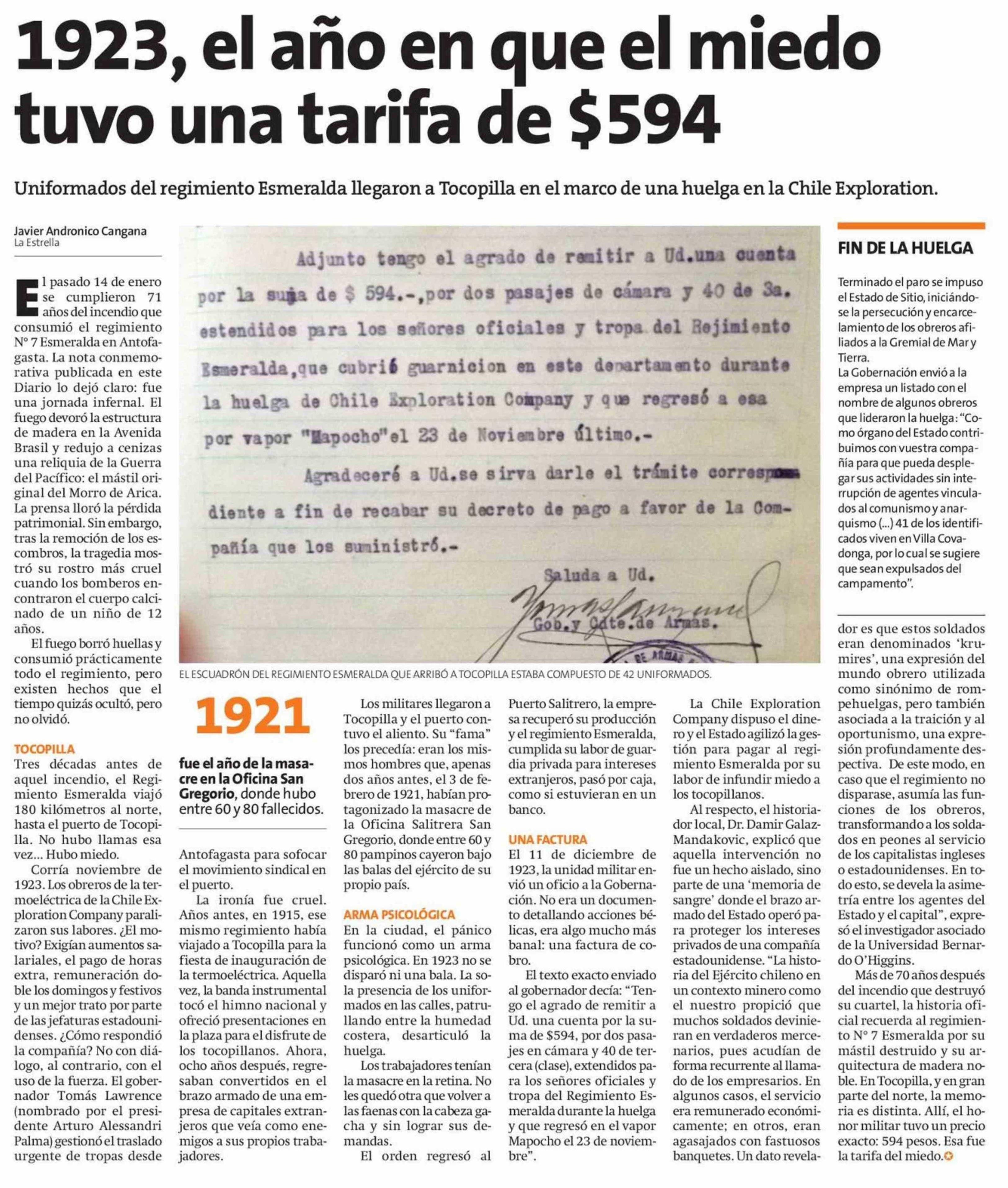 1923, El año en que el miedo tuvo una tarifa de $594 26-01-2026 La Estrella de Antofagasta |