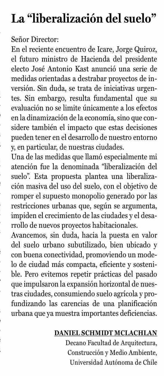 Título: Cartas: La "liberalización del suelo"